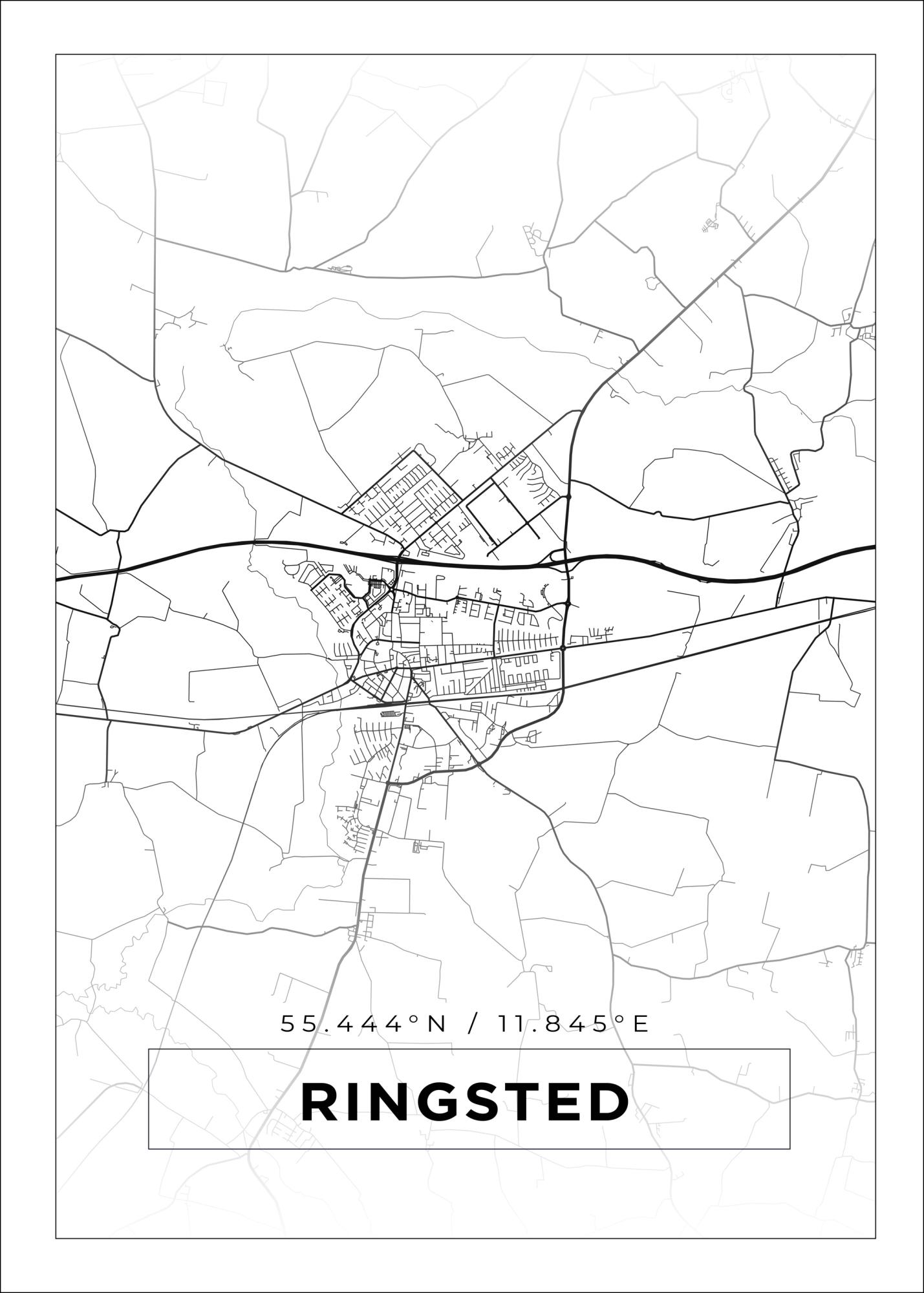 Kartta - Ringsted - Valkoinen Juliste (21x29.7 cm (A4))