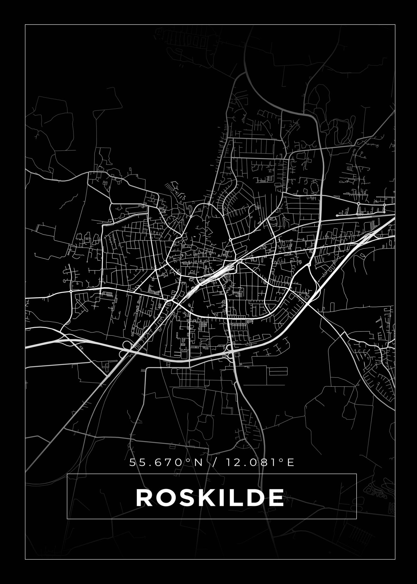 Kartta - Roskilde - Musta Juliste (21x29.7 cm (A4))