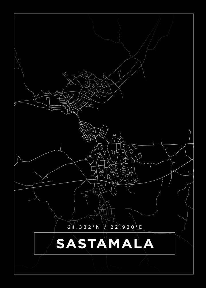 Kartta - Sastamala - Musta Juliste (21x29.7 cm (A4))