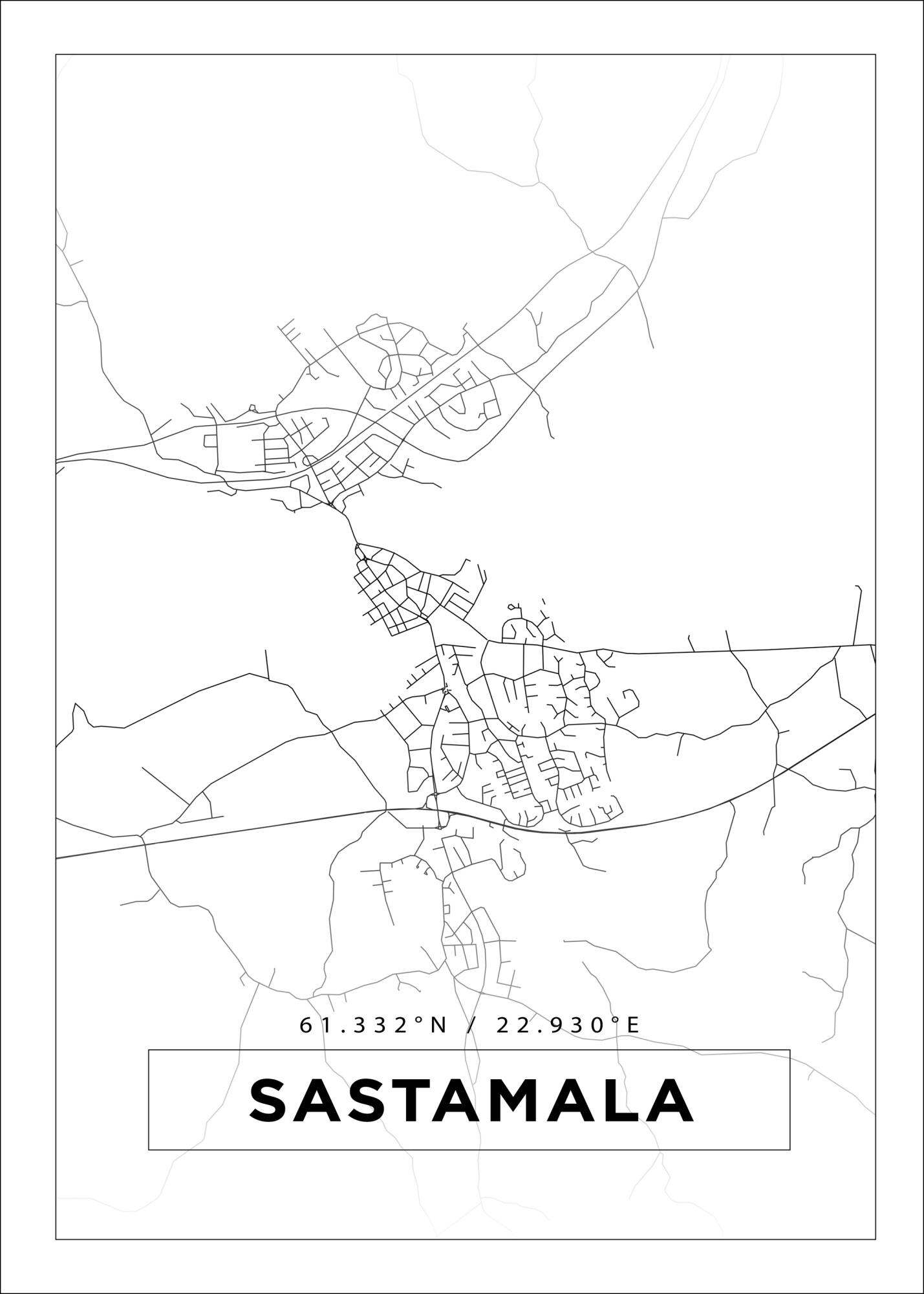 Kartta - Sastamala - Valkoinen Juliste (21x29.7 cm (A4))