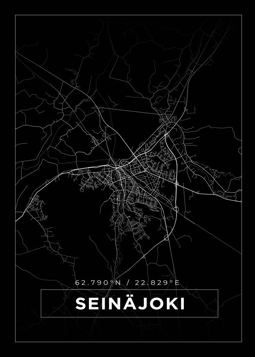 Kartta - Seinäjoki - Musta Juliste (21x29.7 cm (A4))