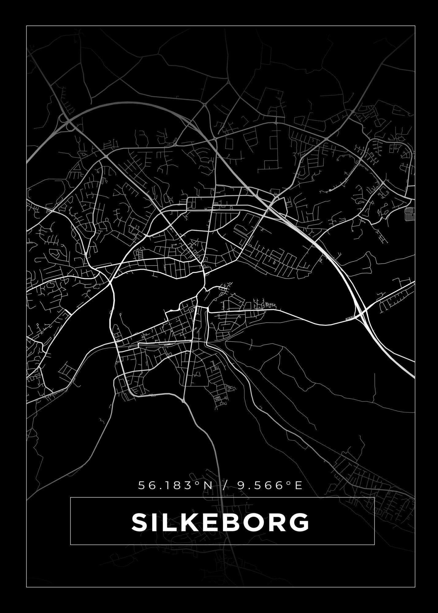 Kartta - Silkeborg - Musta Juliste (21x29.7 cm (A4))