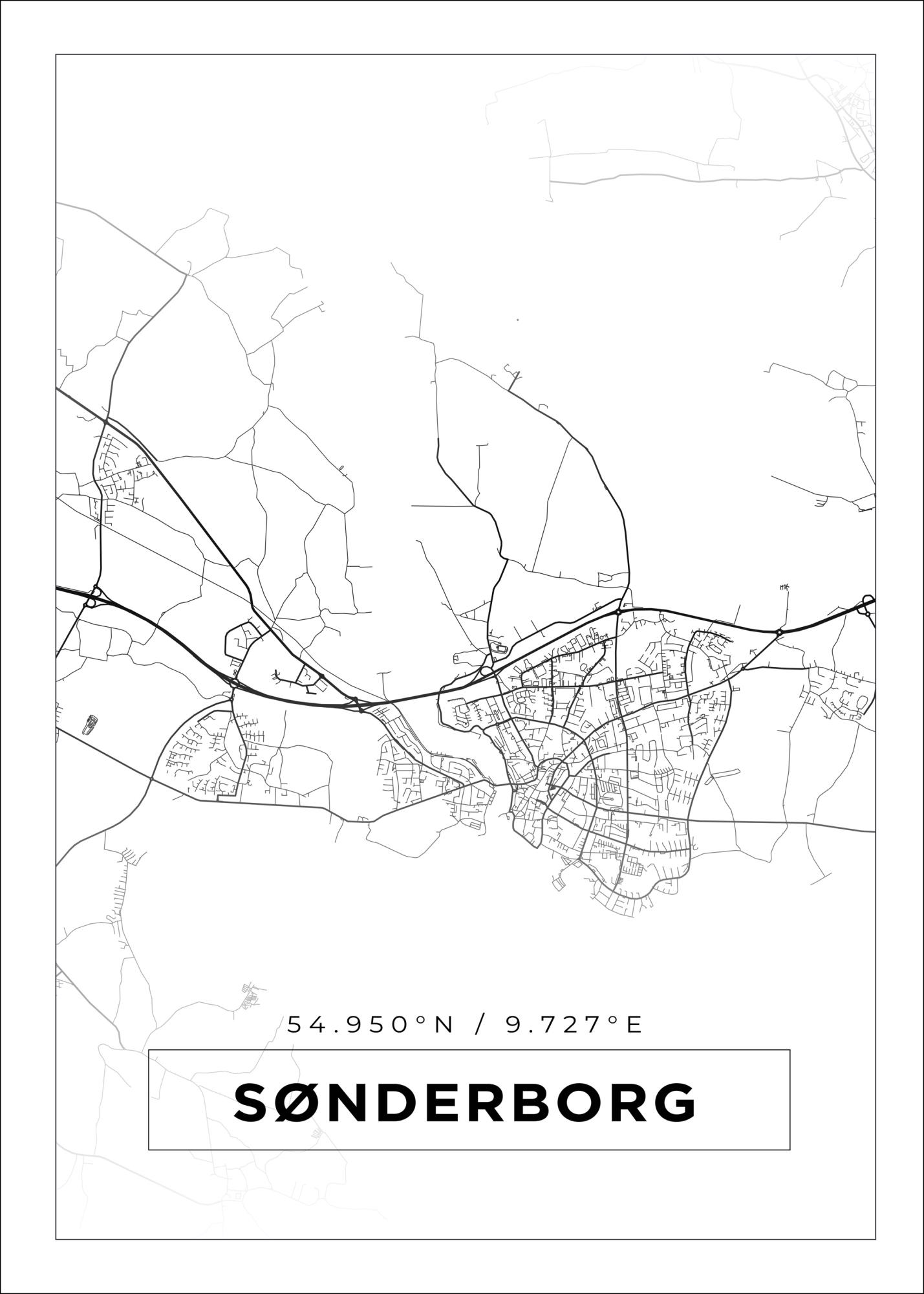Kartta - Sønderborg - Valkoinen Juliste (21x29.7 cm (A4))