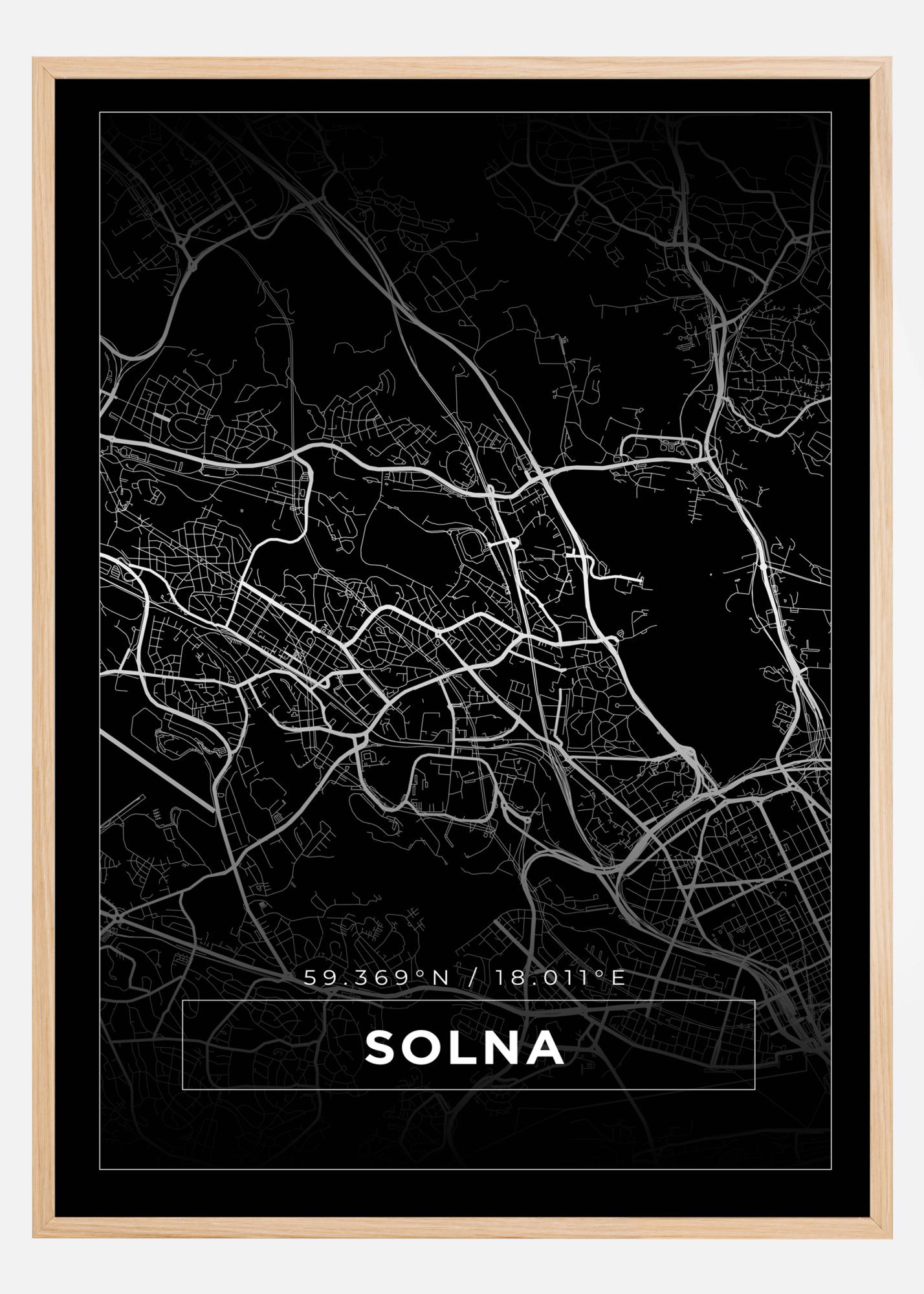 Kartta - Solna - Musta Juliste (40x50 cm)