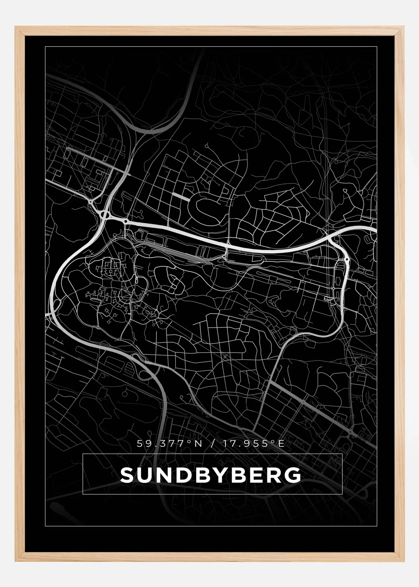 Kartta - Sundbyberg - Musta Juliste (21x29.7 cm (A4))