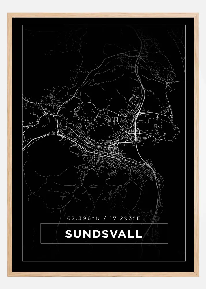 Kartta - Sundsvall - Musta Juliste (21x29.7 cm (A4))