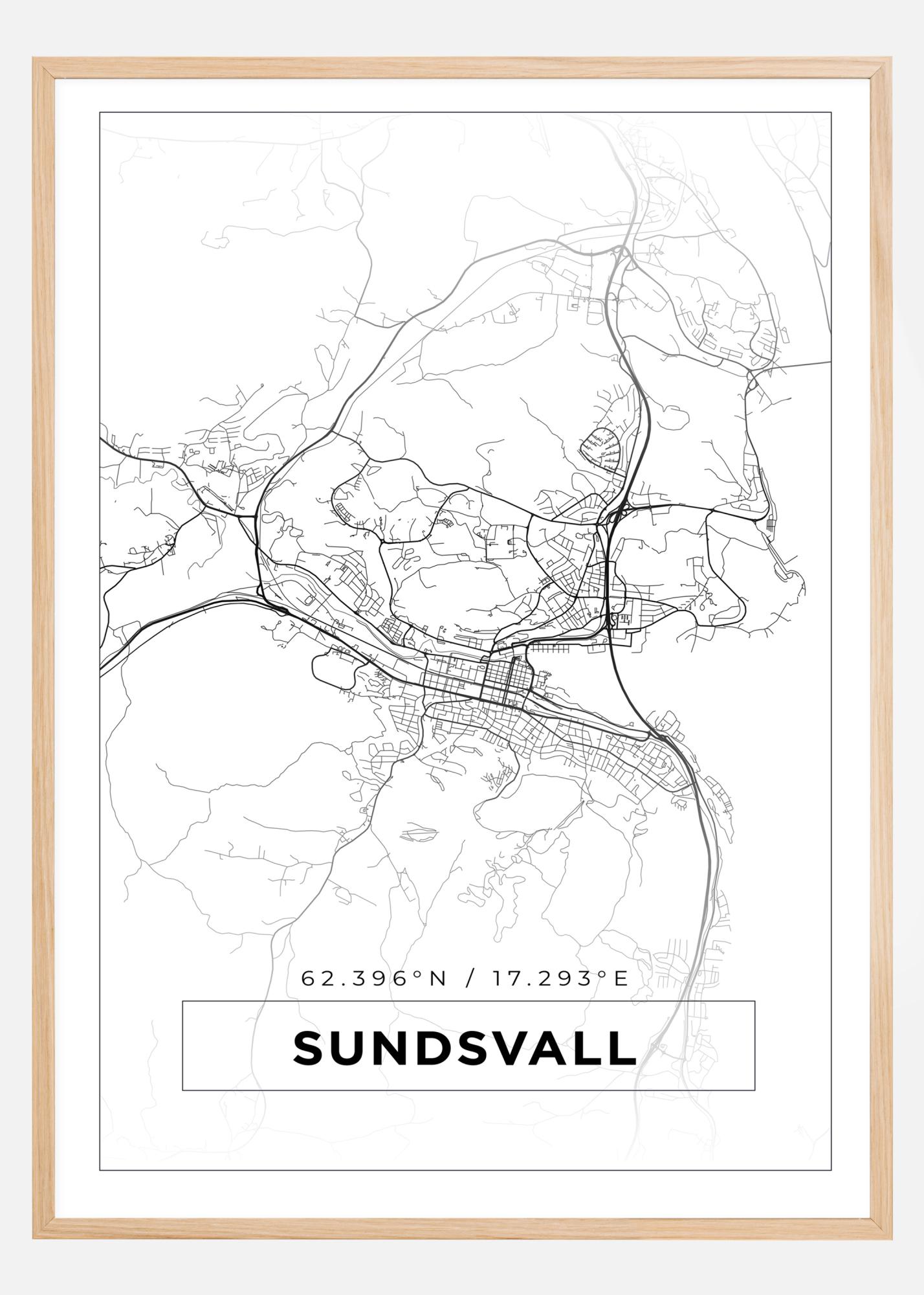 Kartta - Sundsvall - Valkoinen Juliste (30x40 cm)