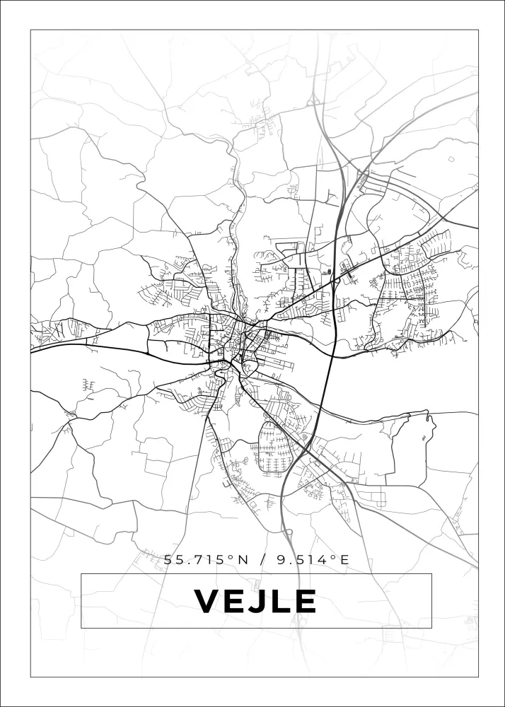 Kartta - Vejle - Valkoinen Juliste (21x29.7 cm (A4))