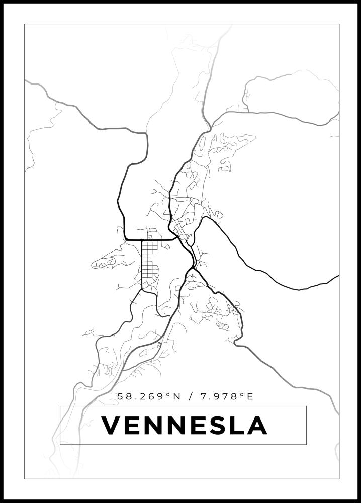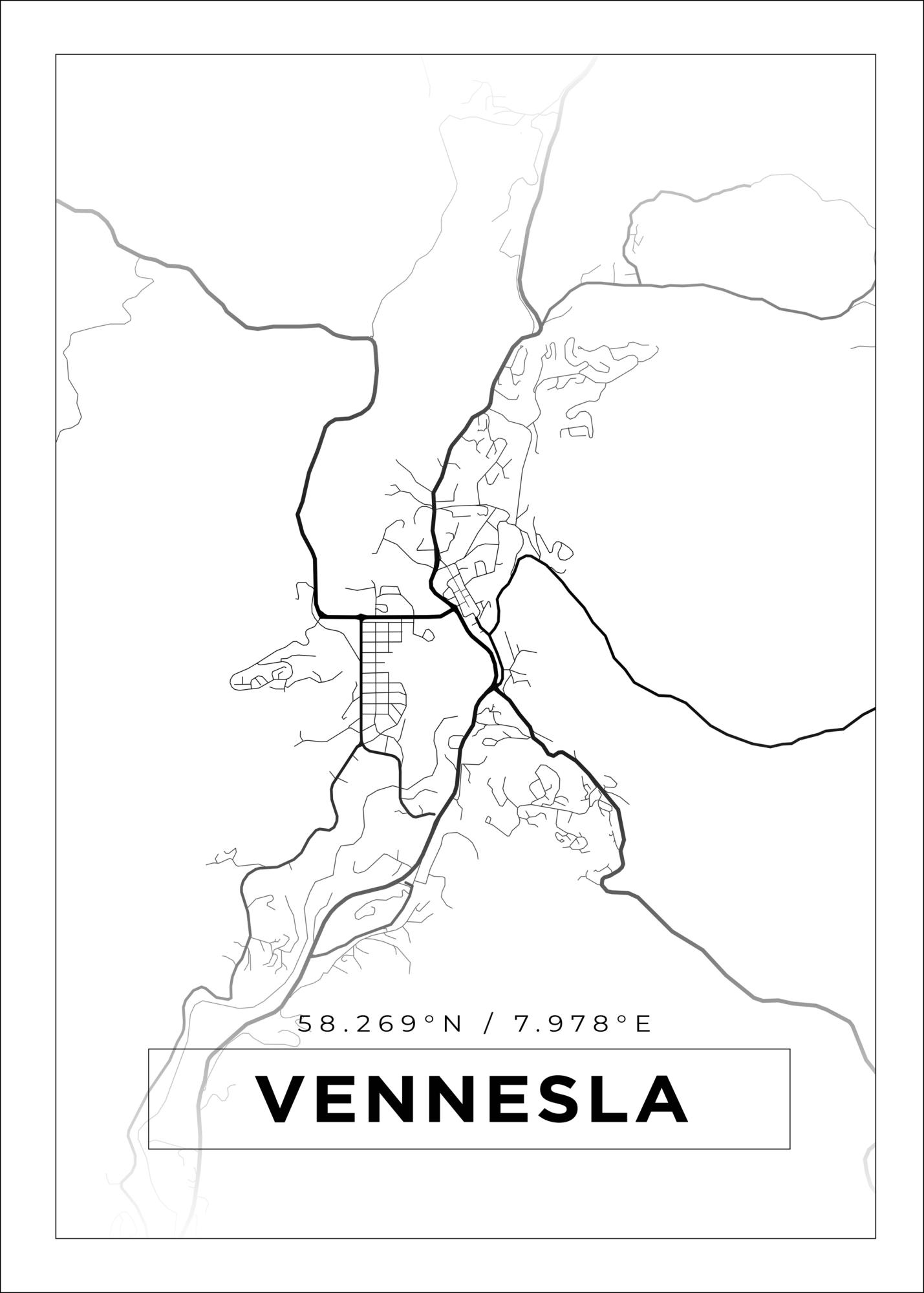 Kartta - Vennesla - Valkoinen Juliste (21x29.7 cm (A4))