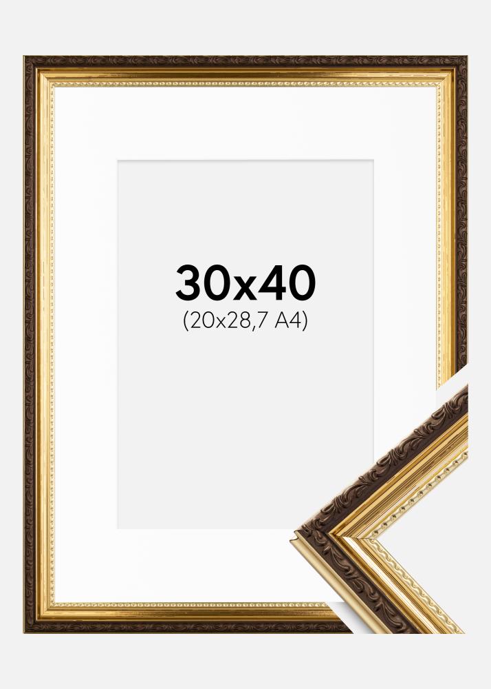 Kehys Abisko Kulta 30x40 cm - Passepartout Valkoinen 21x29,7 cm (A4)