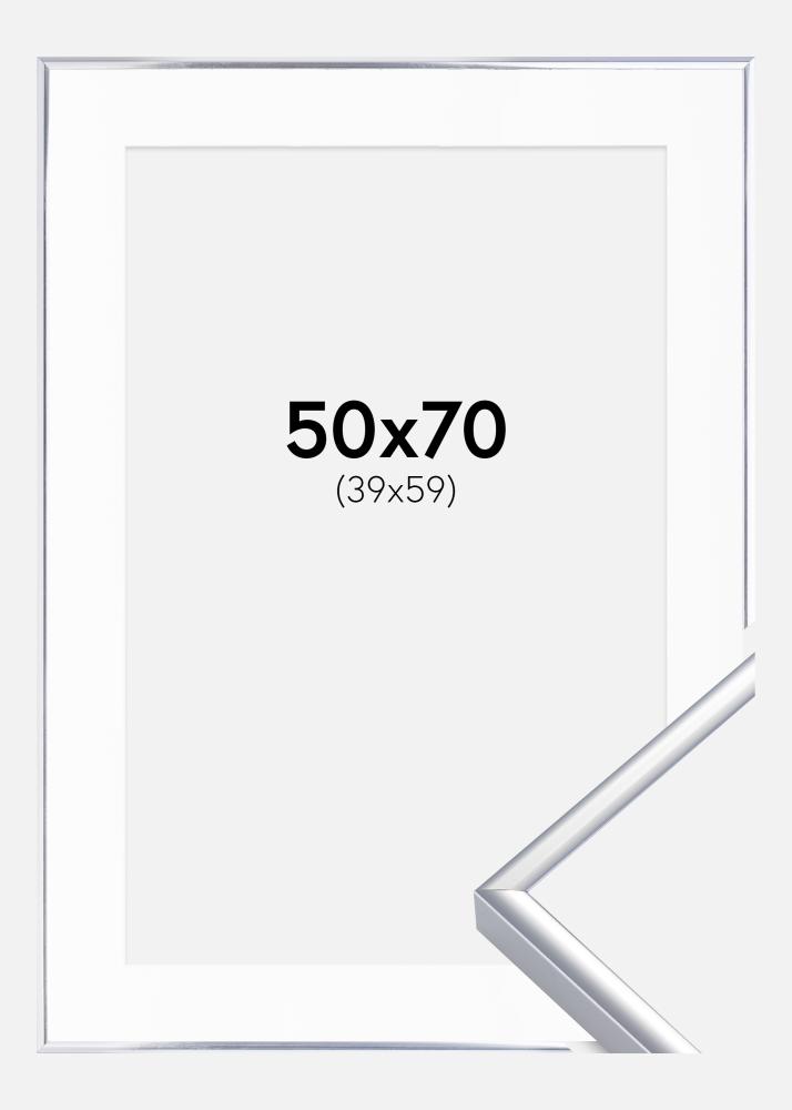 Kehys Alumiini Kiiltävä Hopea 50x70 cm - Passepartout Valkoinen 40x60 cm