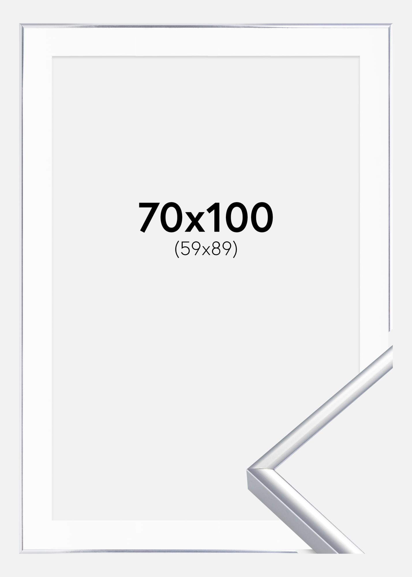 Kehys Alumiini Kiiltävä Hopea 70x100 cm - Passepartout Valkoinen 60x90 cm