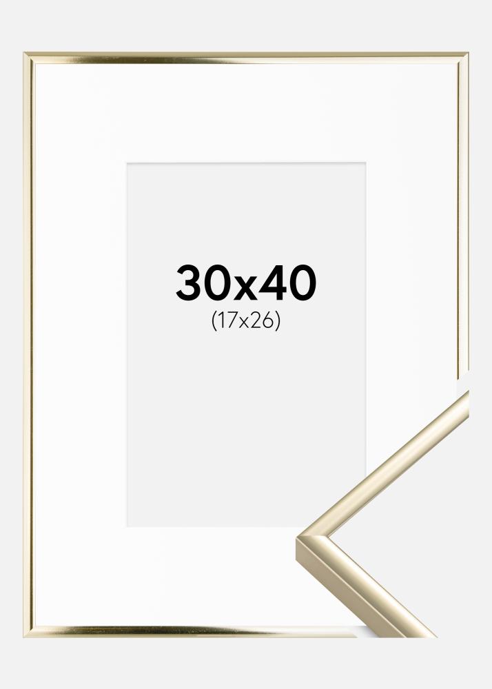 Kehys Alumiini Kiiltävä Kulta 30x40 cm - Passepartout Valkoinen 18x27 cm