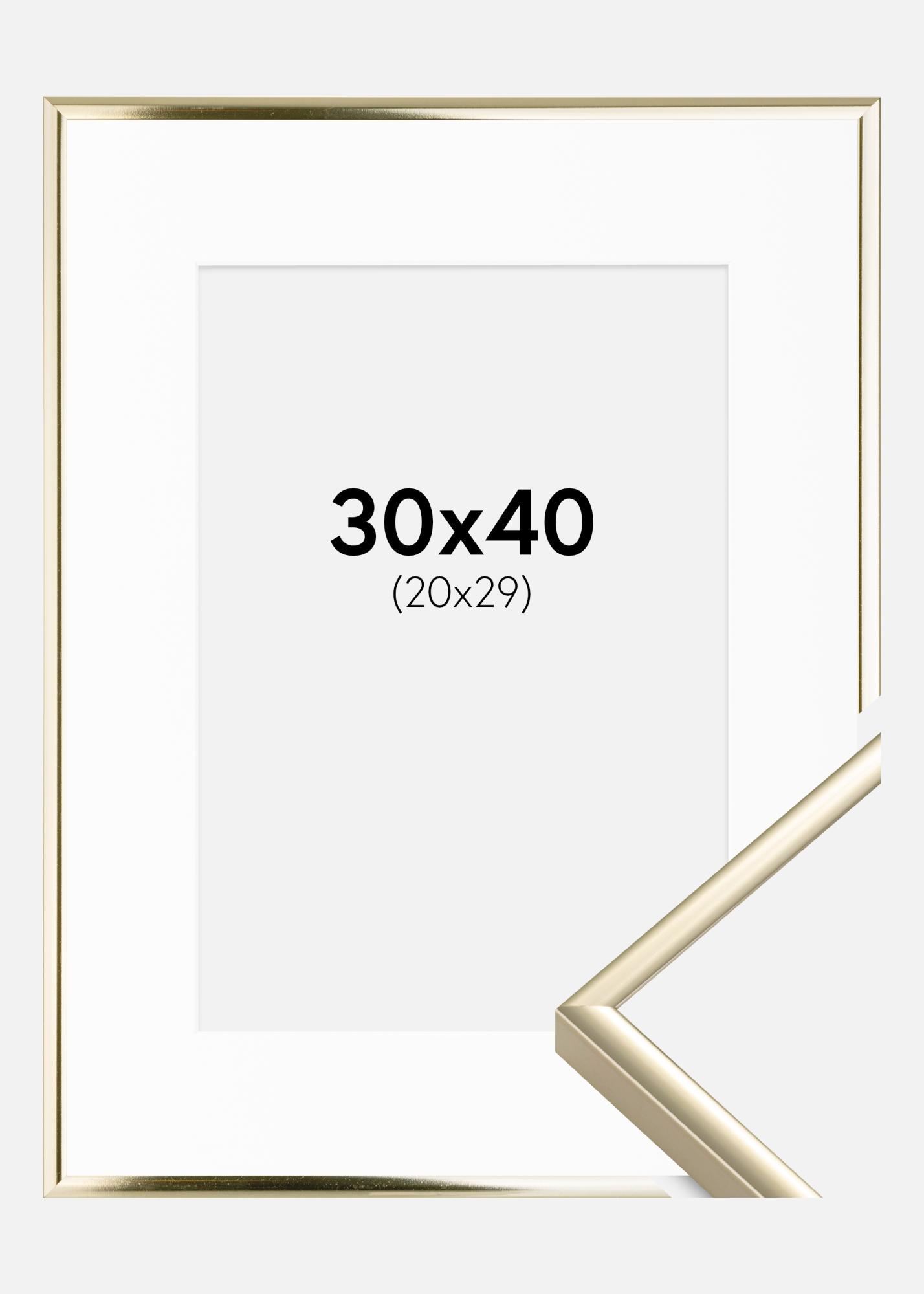 Kehys Alumiini Kiiltävä Kulta 30x40 cm - Passepartout Valkoinen 21x30 cm