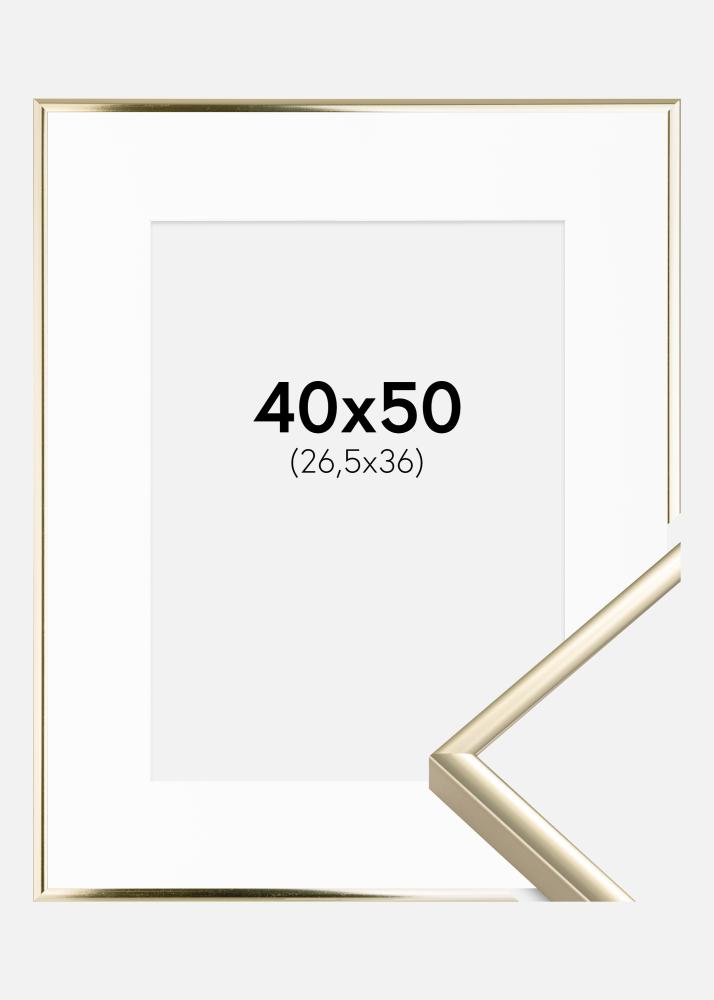 Kehys Alumiini Kiiltävä Kulta 40x50 cm - Passepartout Valkoinen 27,5x37 cm