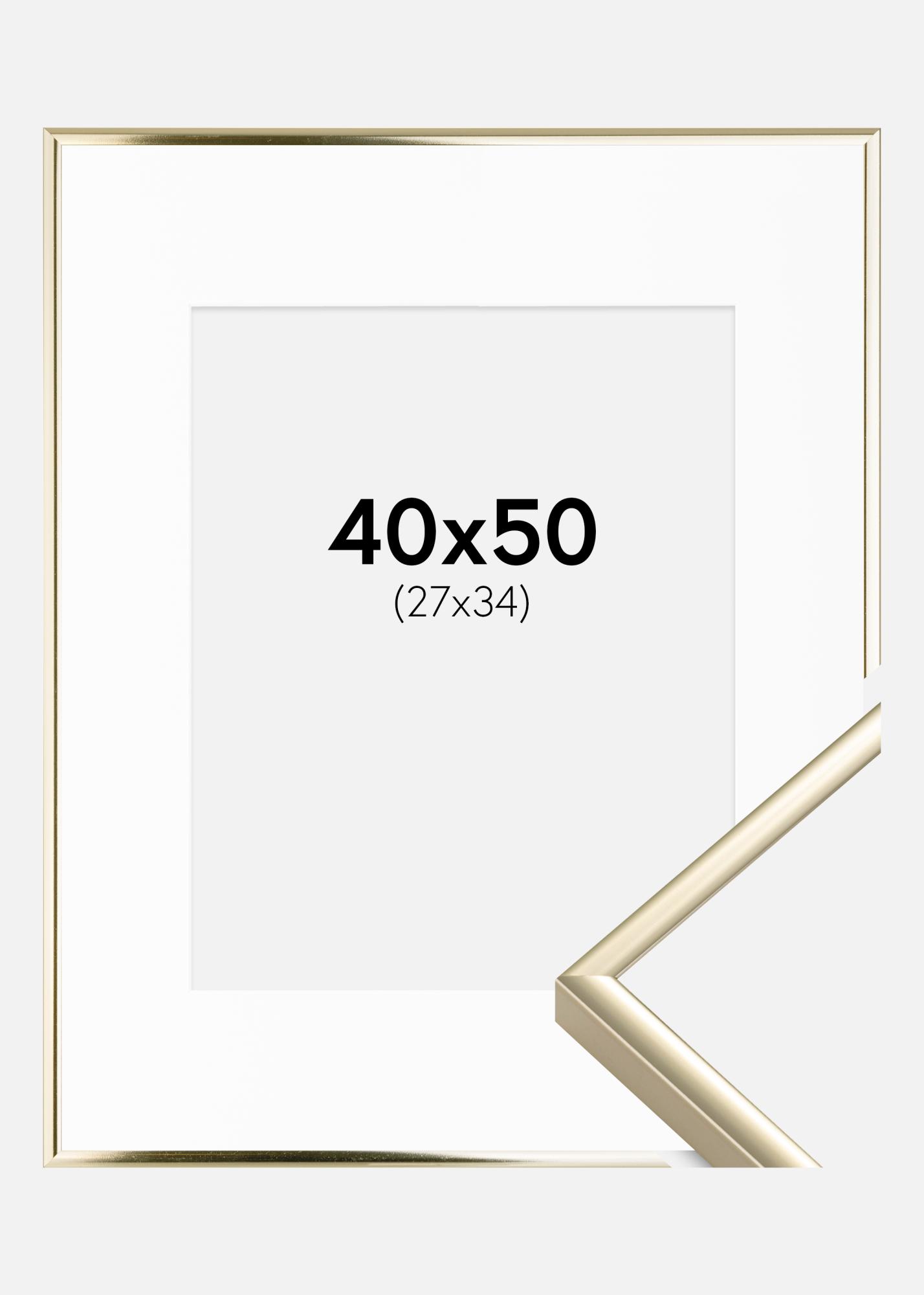 Kehys Alumiini Kiiltävä Kulta 40x50 cm - Passepartout Valkoinen 28x35 cm