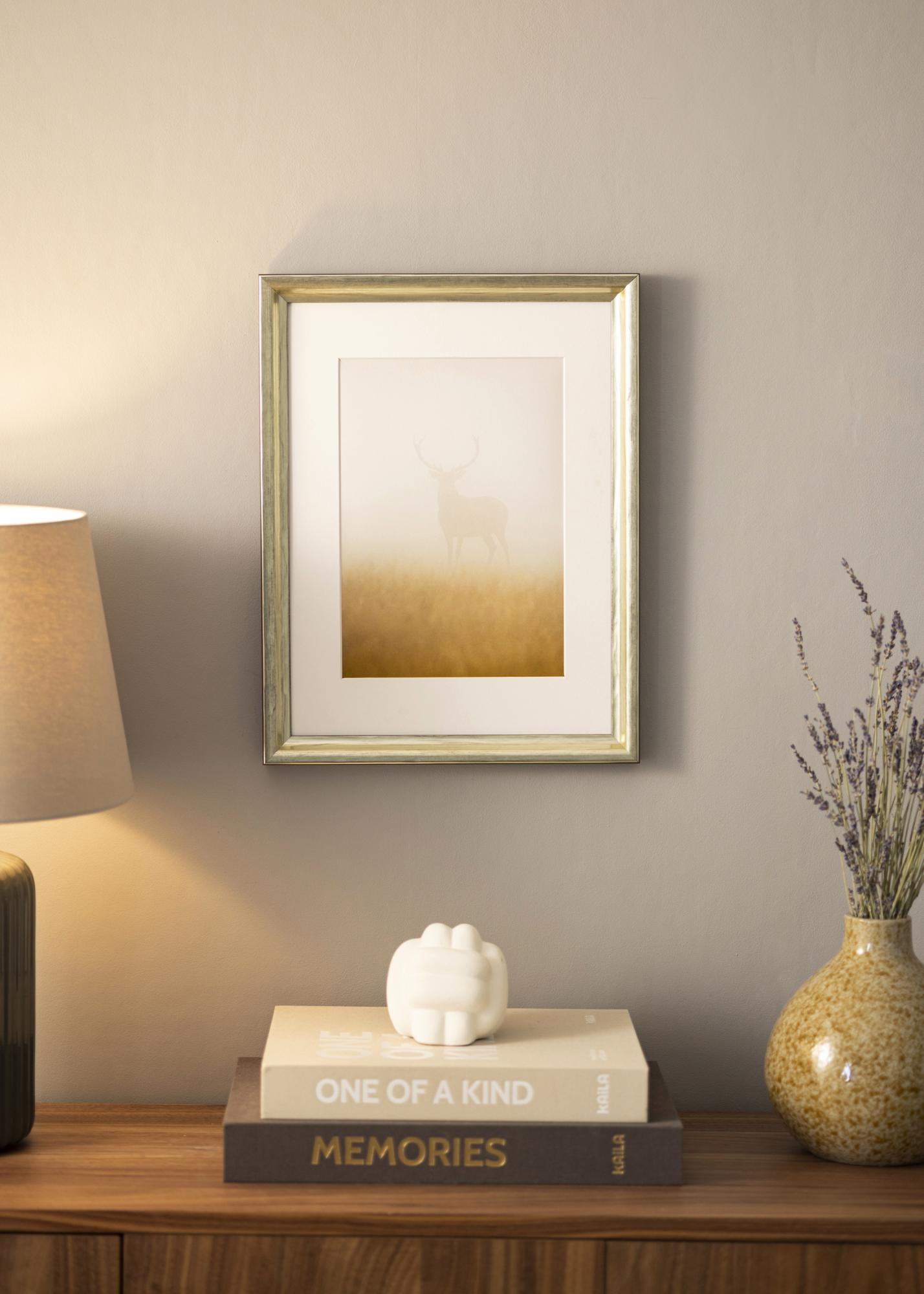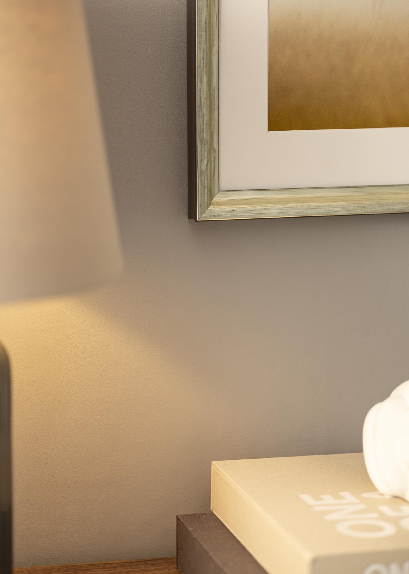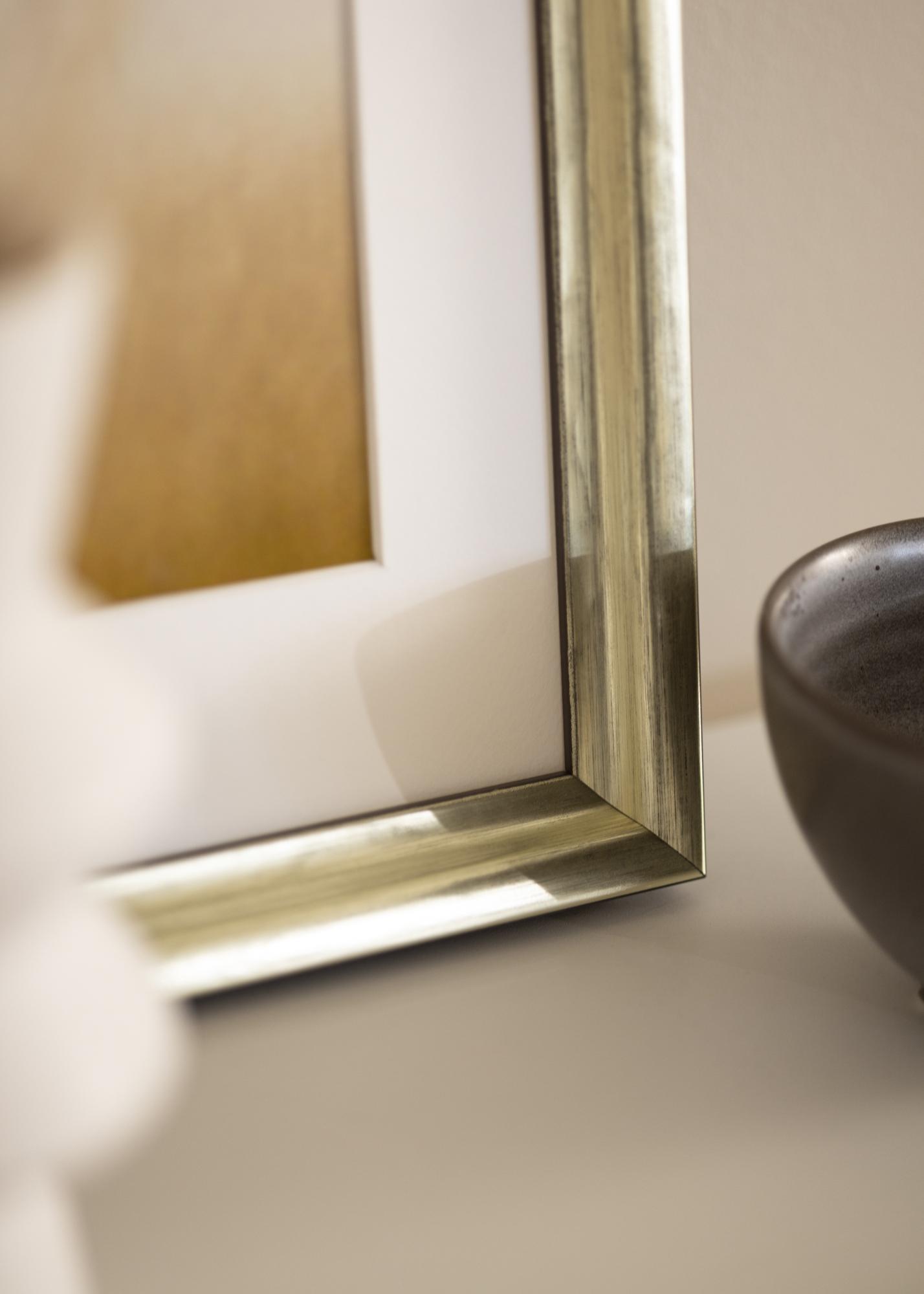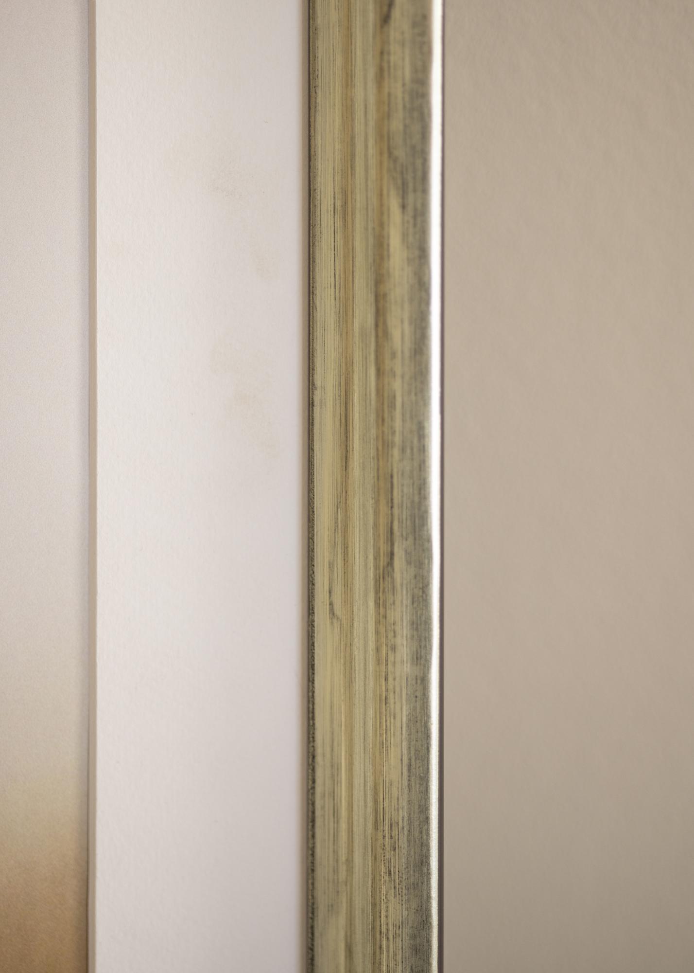 Hopeanvärinen taulukehys antiikkihopean sävyssä, jossa on myös häivähdys kultaa. Se on erinomainen valinta elegantin ja klassisen taulukehyksen etsijälle.