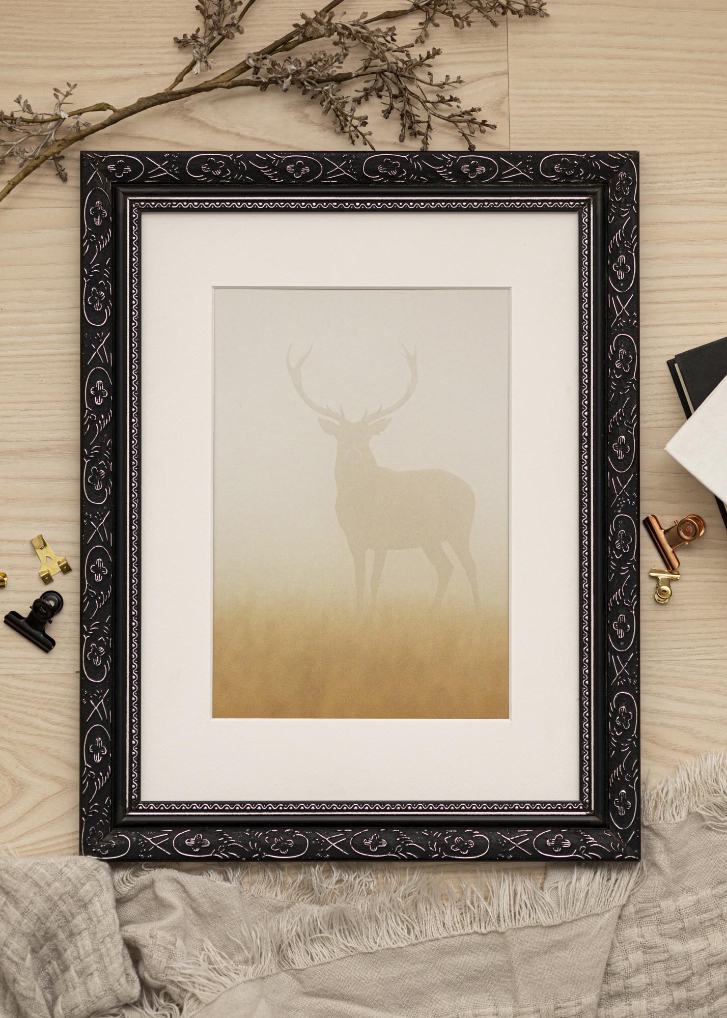 Barock Musta on mahtava retrotyylinen puukehys kauniilla koristeilla. Täydellinen vaihtoehto, kun etsit leveää kaunista puukehystä vanhanajan tyyliin. Erinomainen valinta muistoille, joista pidät kovasti.