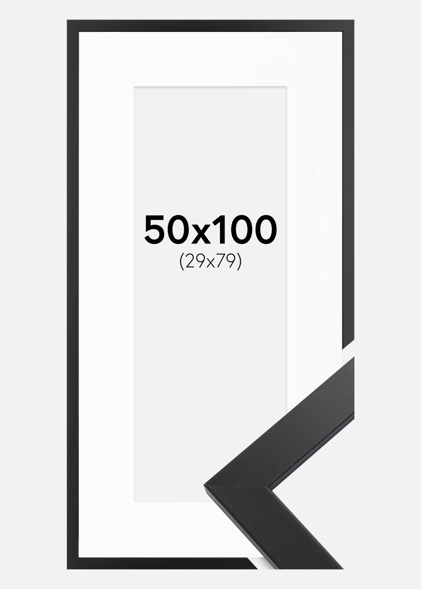 Kehys Black Wood 50x100 cm - Passepartout Valkoinen 30x80 cm