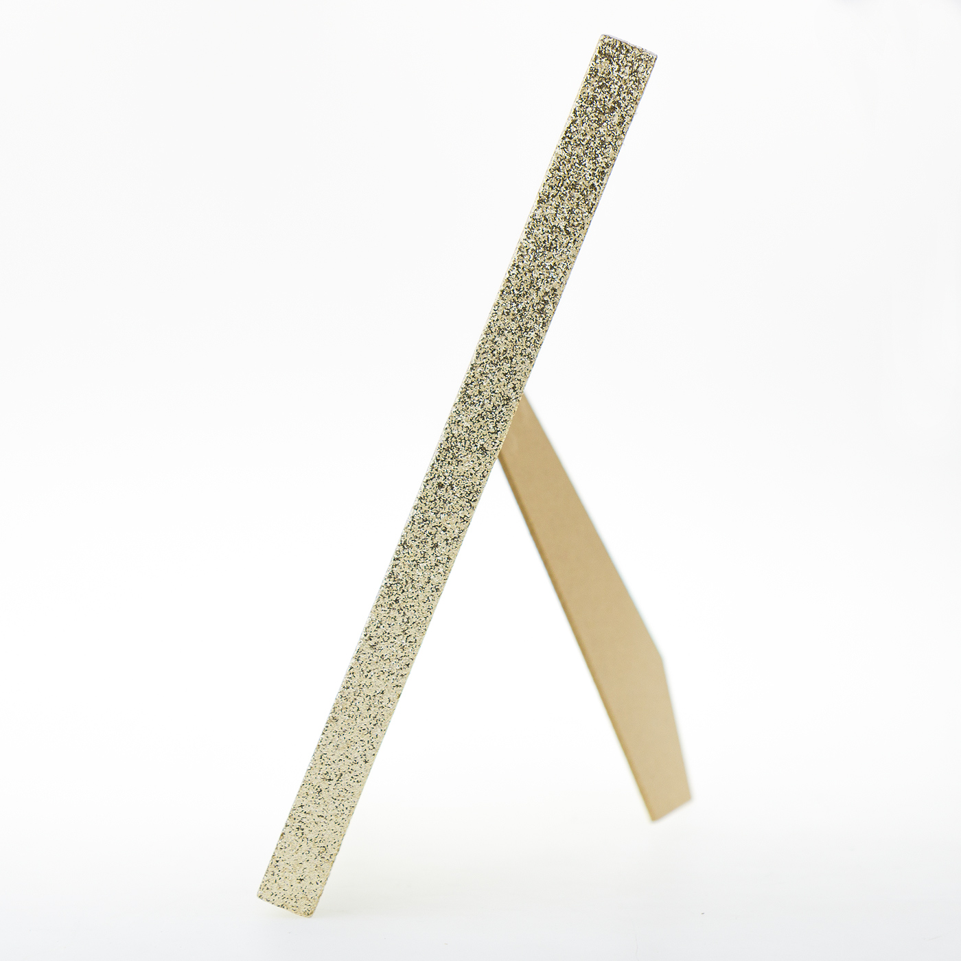 Tämä muotokuvakehys on suunniteltu sopivaksi standardikokoiseen valokuvan kokoon 13 x 18 cm, mikä tekee siitä ihanteellisen valinnan suosikkikuviesi esittelyyn. Olipa se sitten hyllyllä, työpöydällä tai seinällä, tämä kultakehys lisää glamouria sisustukseesi.