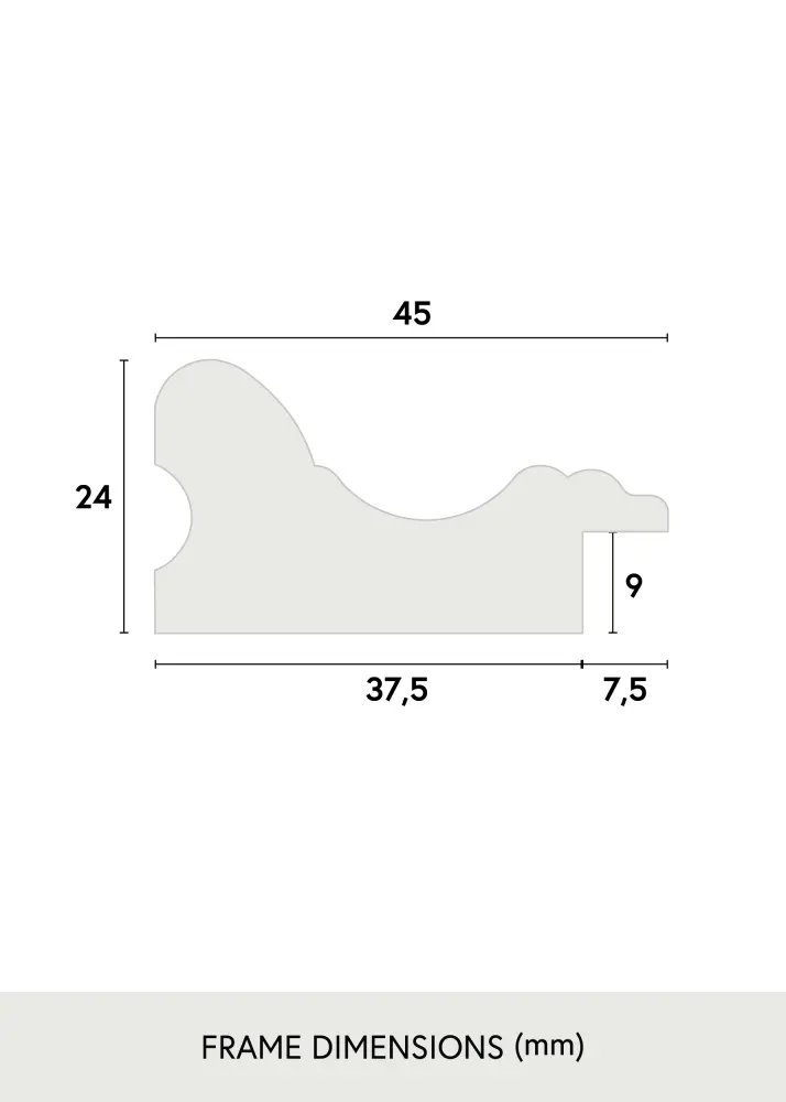 Jos etsit kehystä joka vetää katseet puoleensa, niin Charleston on se oikea! Tämä upea ja moderni kehys on profiloitu ja sillä on monta eri symmetristä tasoa. Se sopii mainiosti dramaattiselle kuvalle tai valokuvalle jossa on paljon mustaa väriä. Valitse väreistä musta, valkoinen, hopea ja kulta.