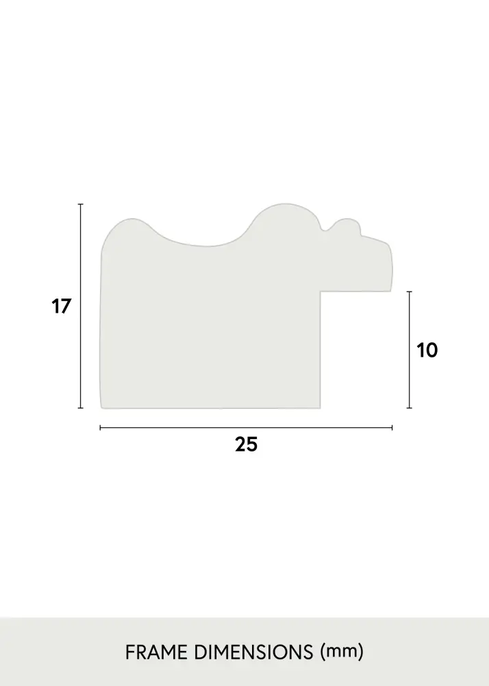 25 mm leveä kehyslista yhdistettynä 17 mm syvyyteen antaa kehykselle vankan ja kestävän tunteen. Puusta valmistettu mittatilauskehys tarjoaa sekä kestävyyttä että estetiikkaa. Runsas ornamointi vahvistaa antiikkityyliä ja tekee kehyksestä erinomaisen valinnan sekä klassisiin että moderneihin ympäristöihin.