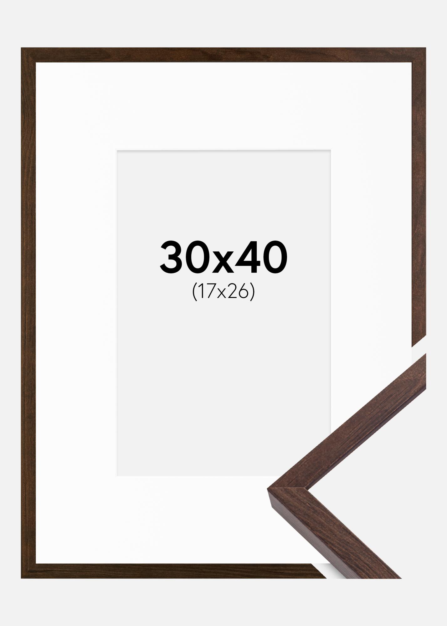 Kehys E-Line Saksanpähkinä 30x40 cm - Passepartout Valkoinen 18x27 cm