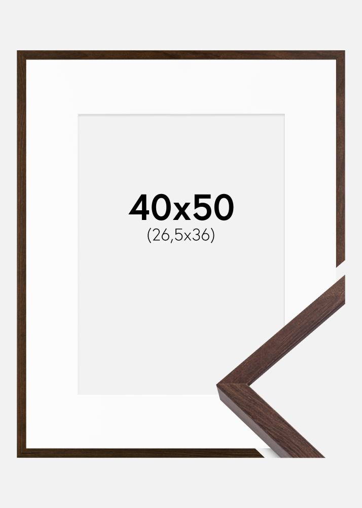 Kehys E-Line Saksanpähkinä 40x50 cm - Passepartout Valkoinen 27,5x37 cm