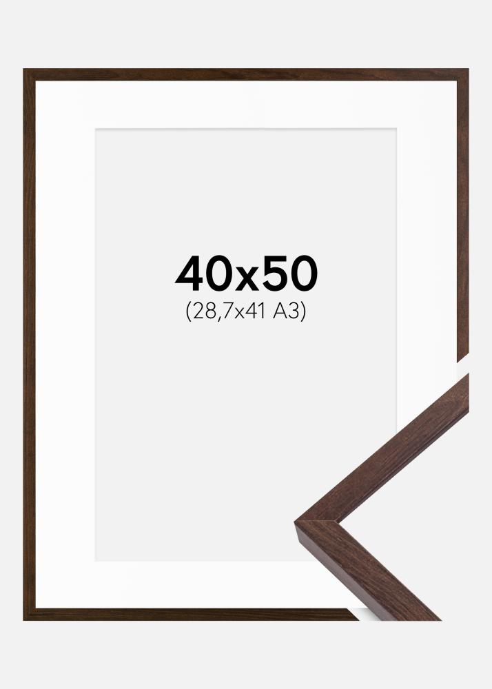Kehys E-Line Saksanpähkinä 40x50 cm - Passepartout Valkoinen 29,7x42 cm (A3)
