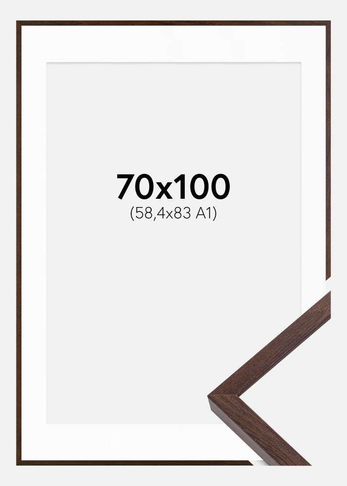 Kehys E-Line Saksanpähkinä 70x100 cm - Passepartout Valkoinen 59,4x84 cm (A1)