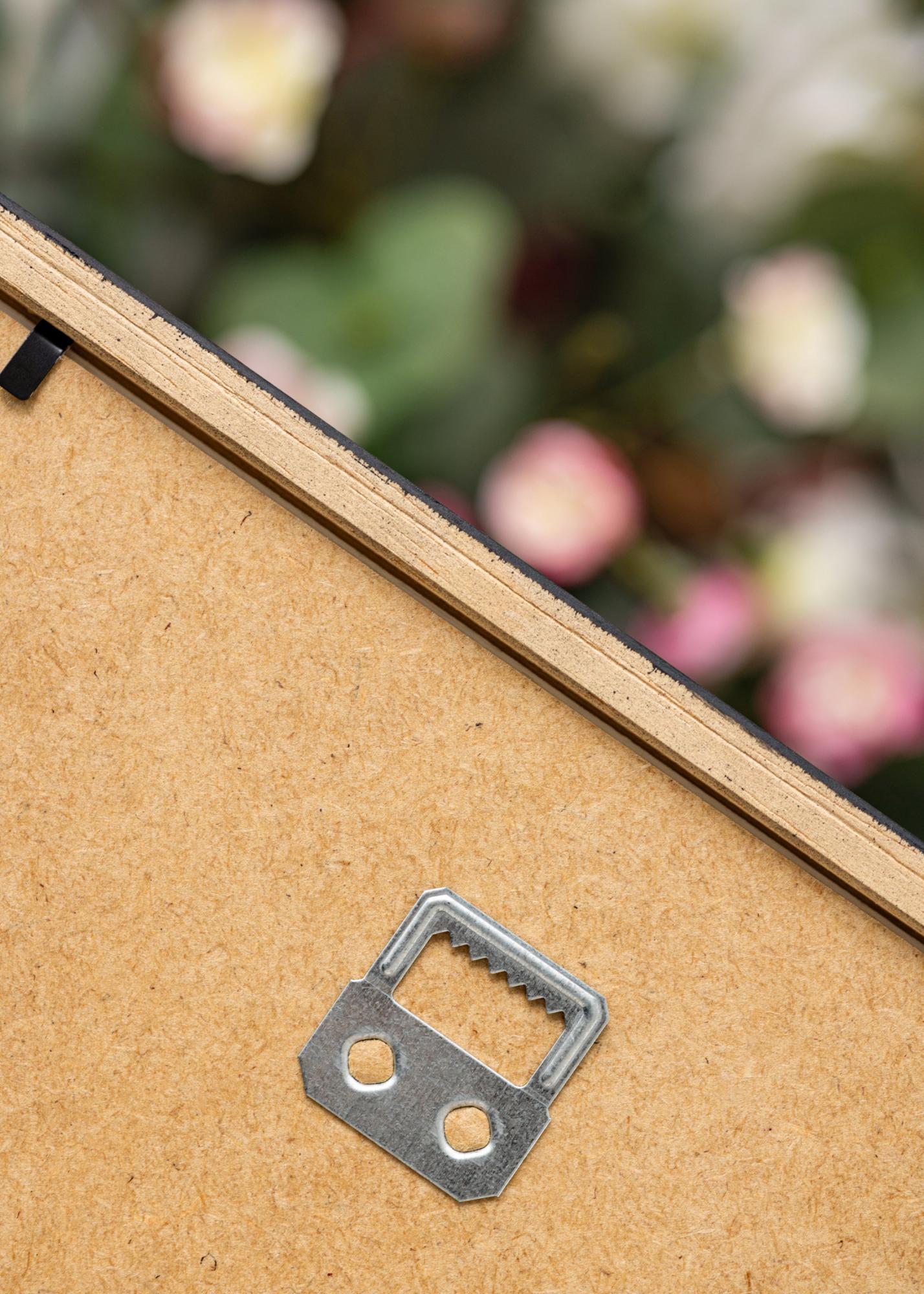 Tämä taulukehys toimitetaan float-lasin kanssa. Se on lasi jossa on paremmat valo-ominaisuudet, kuin tavallisessa lasissa, ja sen lisäksi 40–45%:n UV-suoja. Kehyksen ruskea takakappale on valmistettu MDF:sta ja varustettu ripustussilmukoilla, joilla voit ripustaa kehyksen sekä vaaka- että pystytasoon. Takakappale pysyy paikoilla pienien metalliniittien avulla, jotka voit helposti taivuttaa ylöspäin, kun kehystät kuvasi. Kehyksen huullos (sisäsyvyys) on 8 mm, joten sinulle jää hyvin tilaa täydentää kuva-aiheesi hienostuneella paspatuurilla.