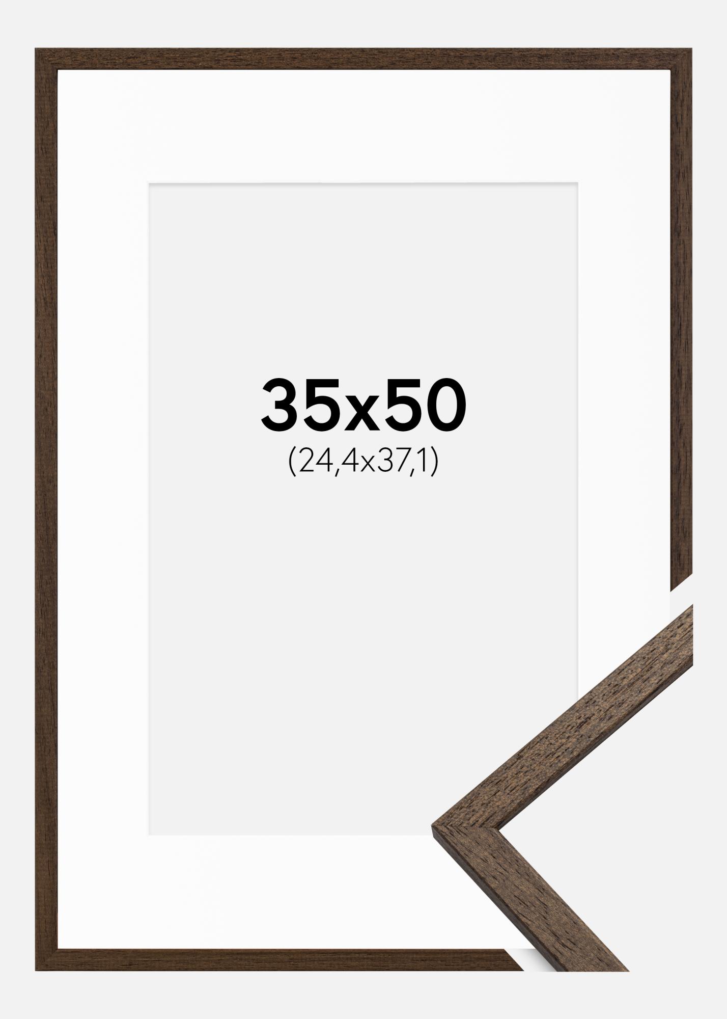 Kehys Edsbyn Saksanpähkinä 35x50 cm - Passepartout Valkoinen 10x15 tuumaa