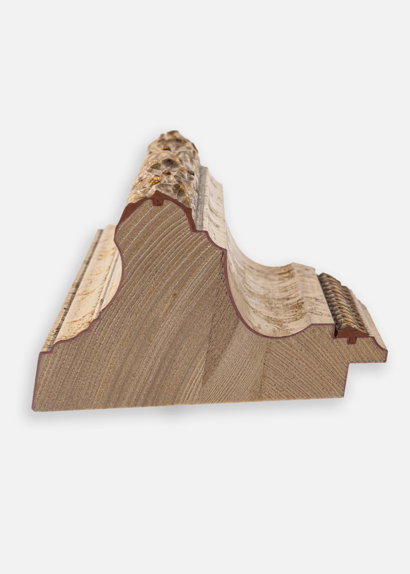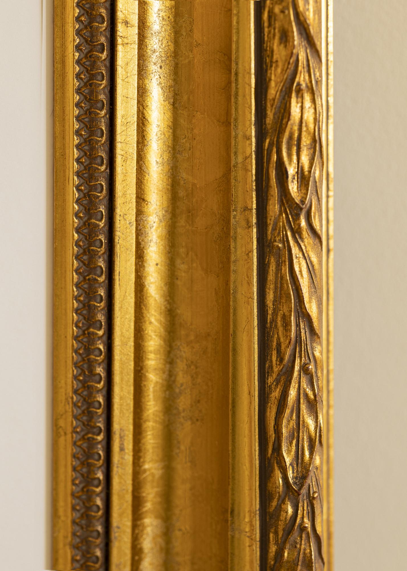 102 mm leveä profiili antaa kehykselle vaikuttavan läsnäolon, kun taas sen 56 mm syvyys luo tukevan ja vakaan kehyksen. Pienet helmenmuotoiset koristeet sisäreunassa antavat hienovaraisen, klassisen kosketuksen, joka parantaa kokonaisvaikutelmaa. Ulkoreunaa koristaa aaltoileva lehtikuvio, joka lisää kehykseen hienostuneen ja ajattoman luonteen.