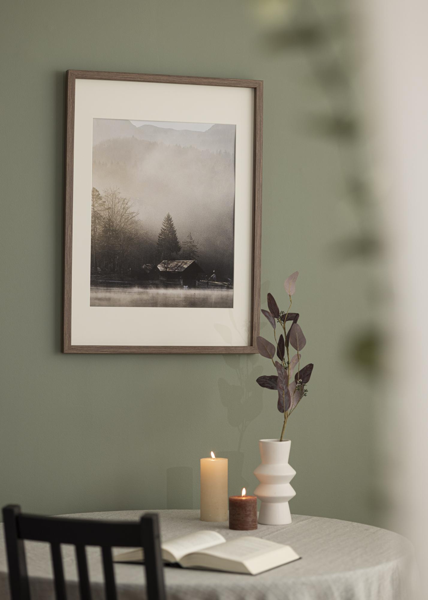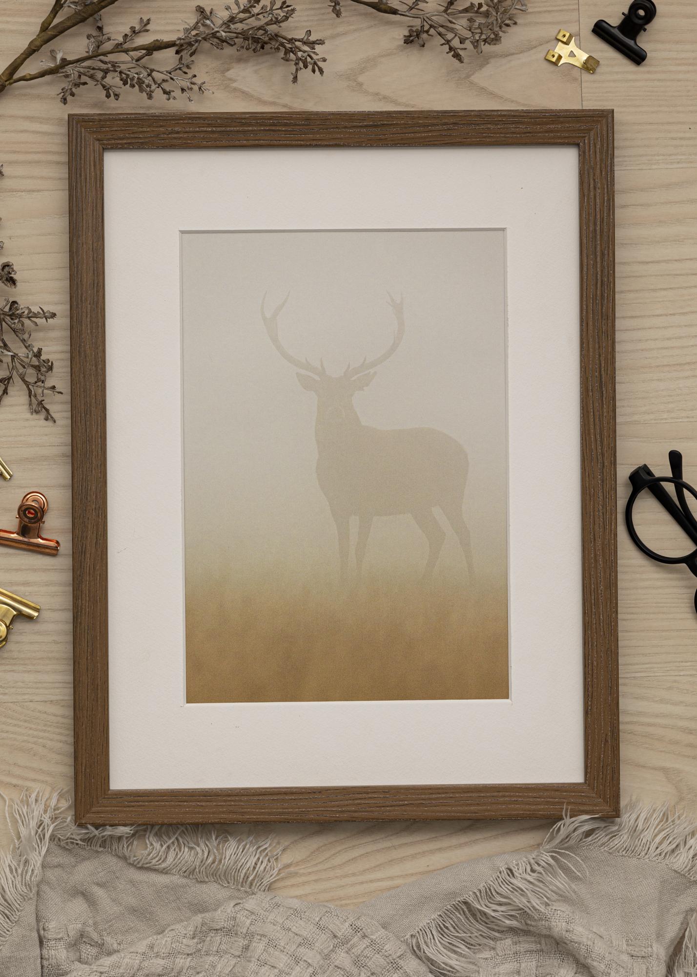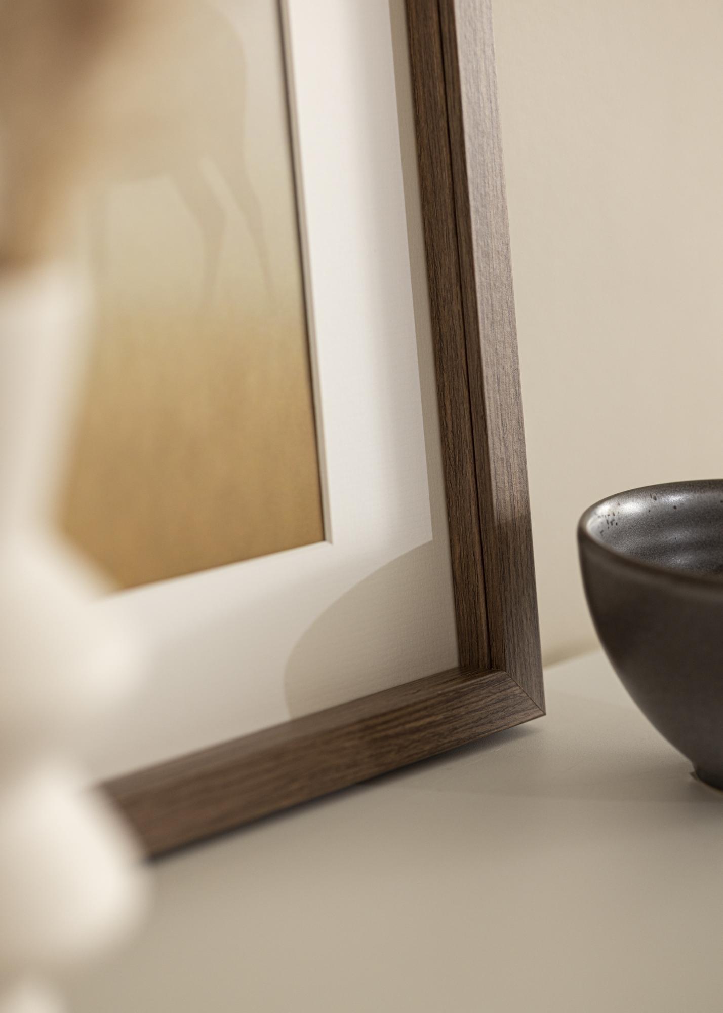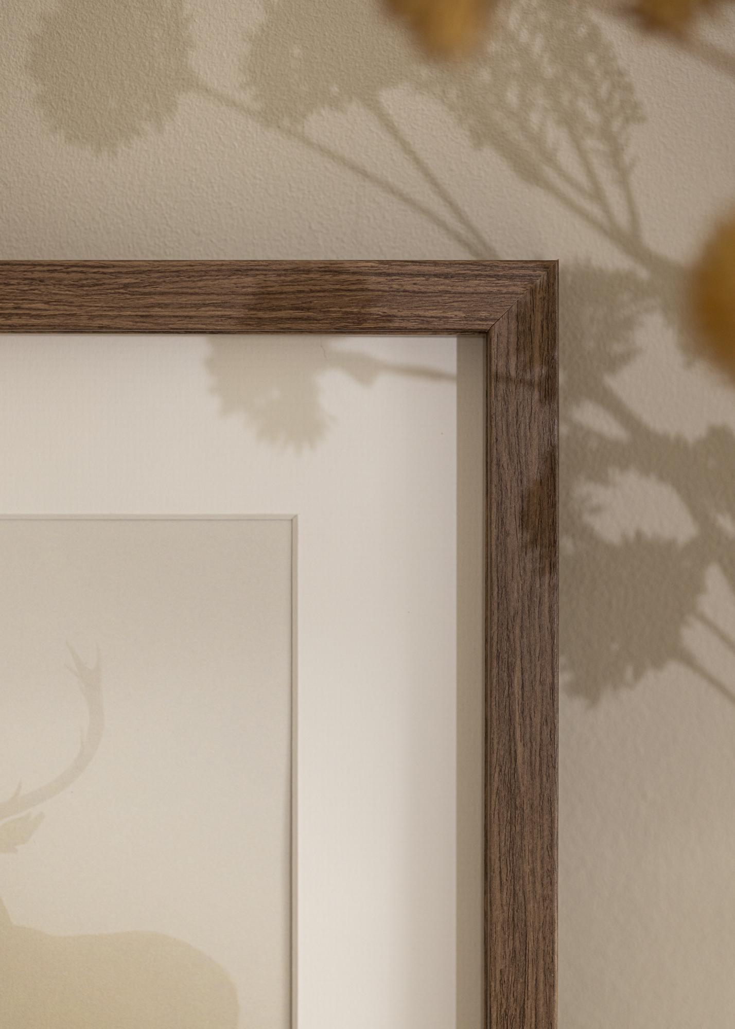 Elegant Box on tyylikäs laatikkokehys, jossa on elegantti ruskea puupinta. Se on kokonaissyvyydeltään 30 mm. Kehyksen mukana tulee etäisyyttä määrittävä lista, joten siihen on helppo laittaa myös muita tavaroita, esimerkiksi fanituotteita. Todella monikäyttöinen kehys, jonka mukana tukee valkoinen paspatuuri.