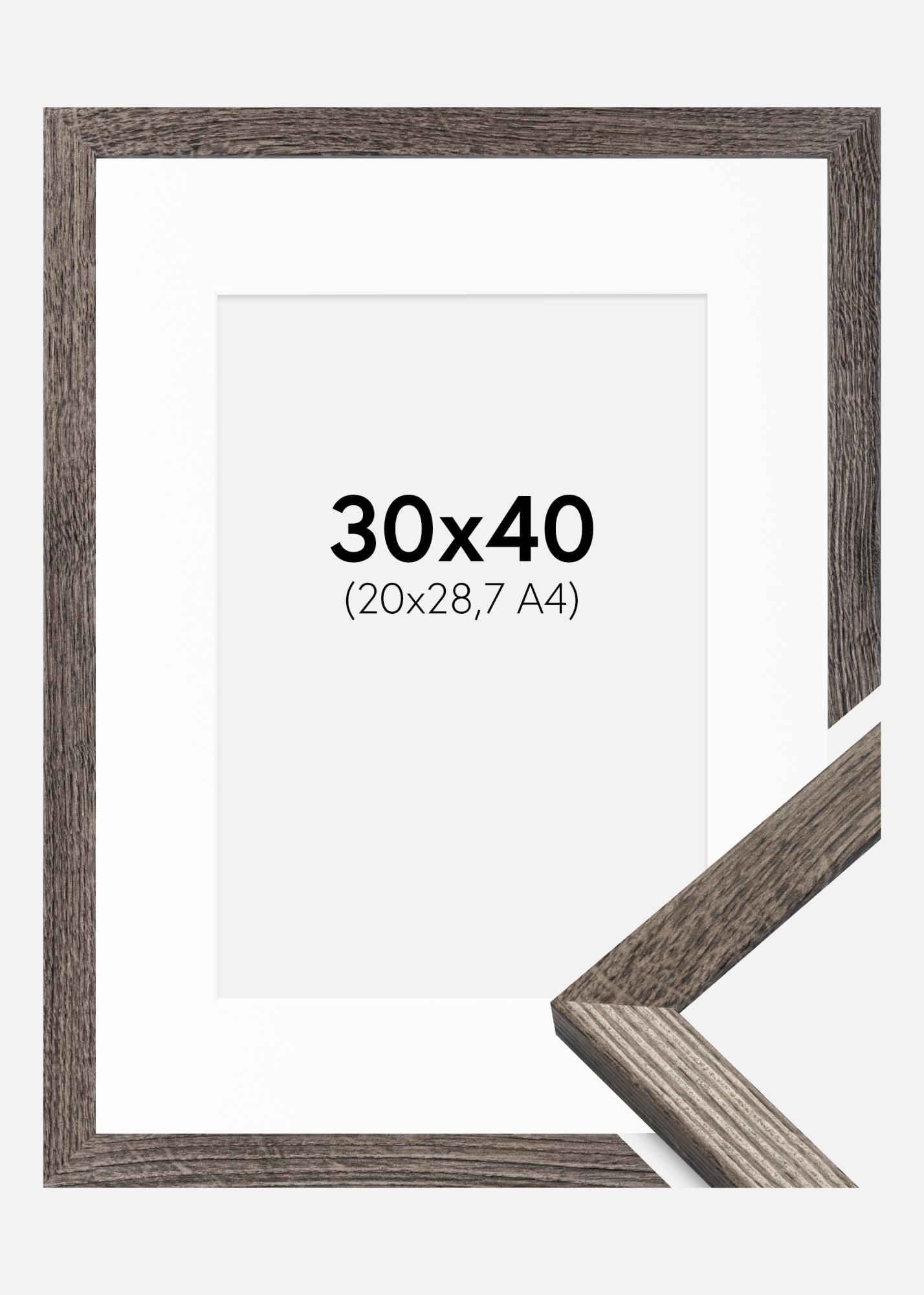 Kehys Fiorito Saksanpähkinä 30x40 cm - Passepartout Valkoinen 21x29,7 cm (A4)
