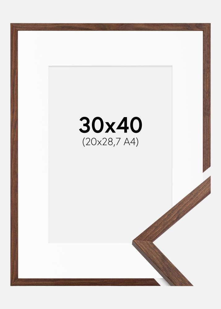 Kehys Galant Saksanpähkinä 30x40 cm - Passepartout Valkoinen 21x29,7 cm (A4)