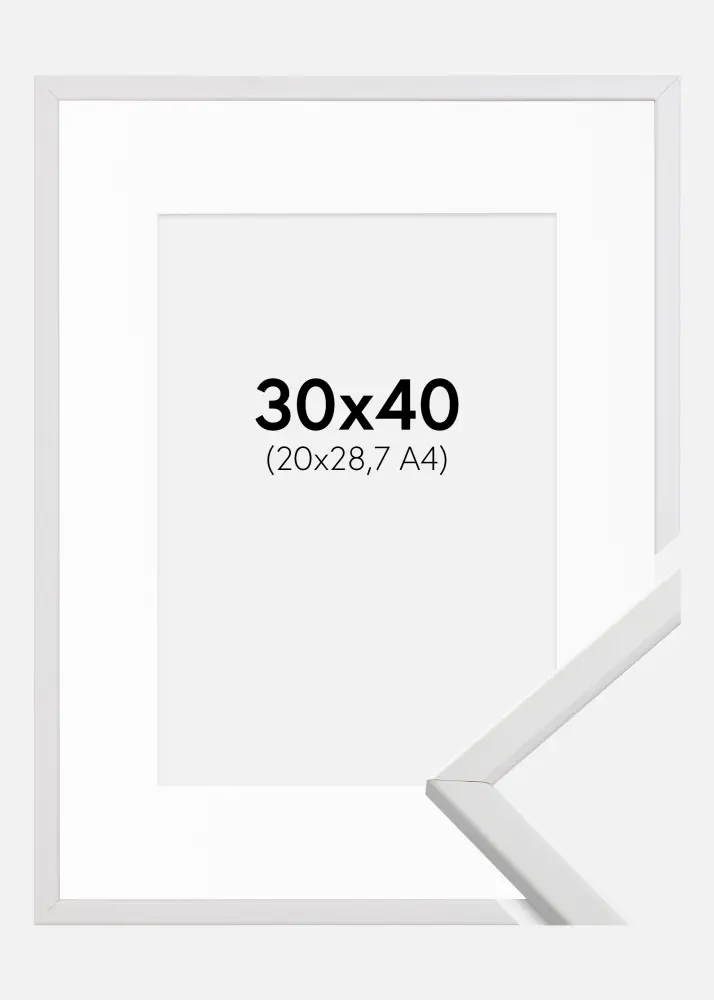 Kehys Galant Valkoinen 30x40 cm - Passepartout Valkoinen 21x29,7 cm (A4)