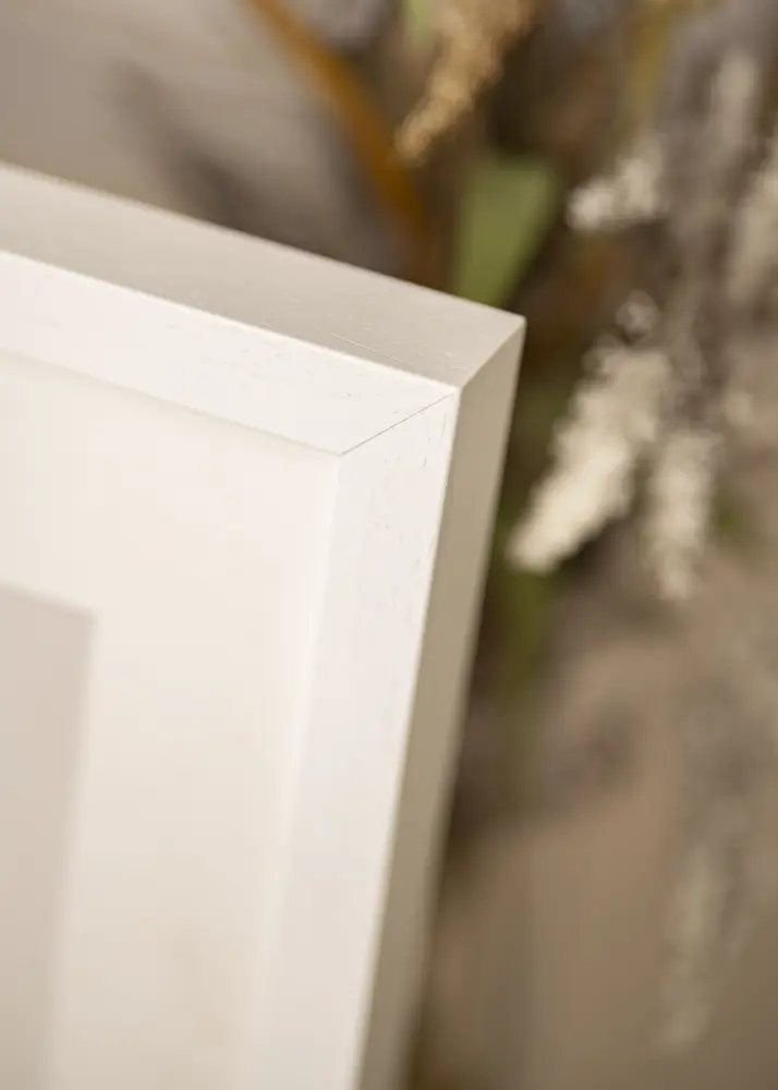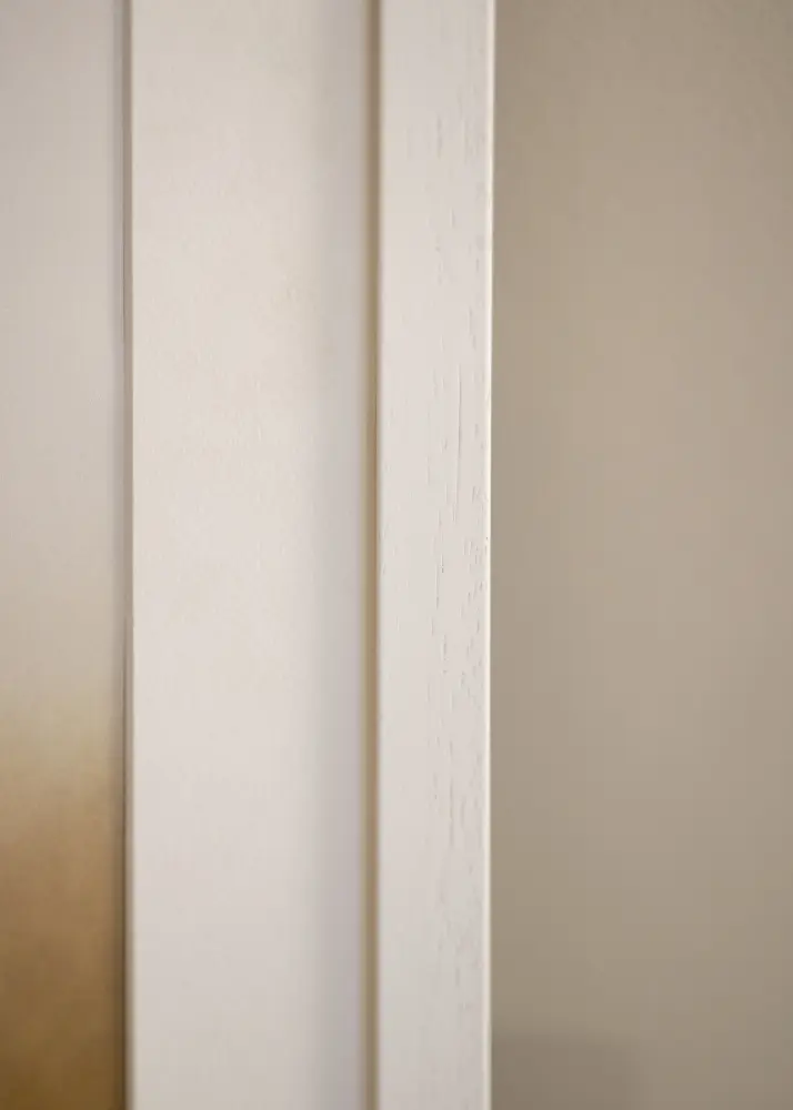 Gävle Valkoinen on tyylikäs puukehys, jonka kokonaissyvyys on 31 mm. Tämä takaa, että kehys tulee ulos seinästä ja huomio pysyy kuvan aiheessa.