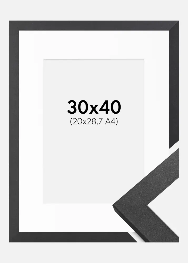Kehys Graphite Wood 30x40 cm - Passepartout Valkoinen 21x29,7 cm (A4)