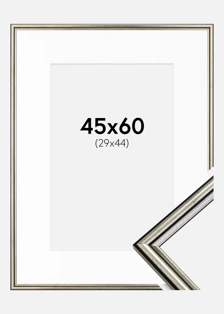 Kehys Horndal Hopea 45x60 cm - Passepartout Valkoinen 30x45 cm