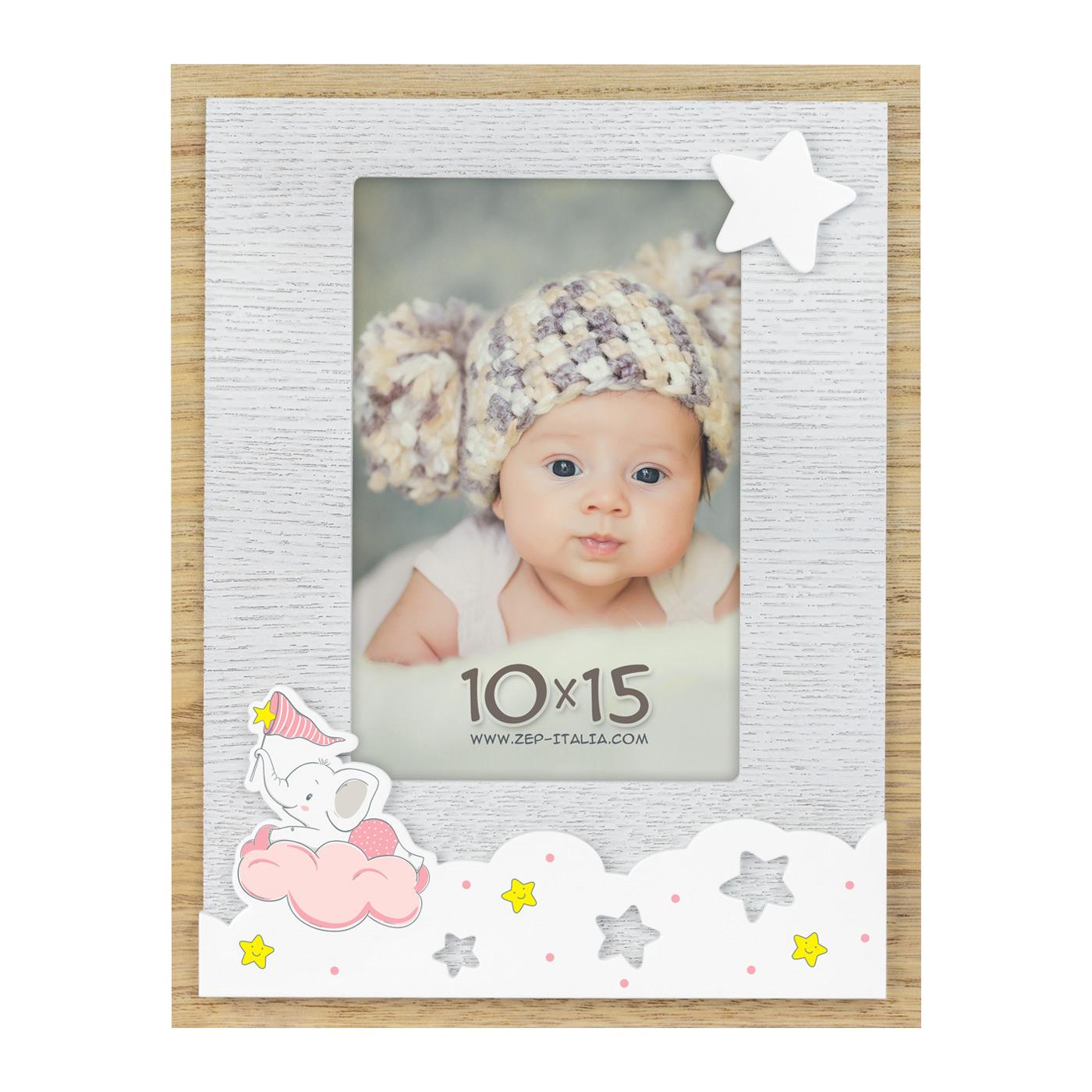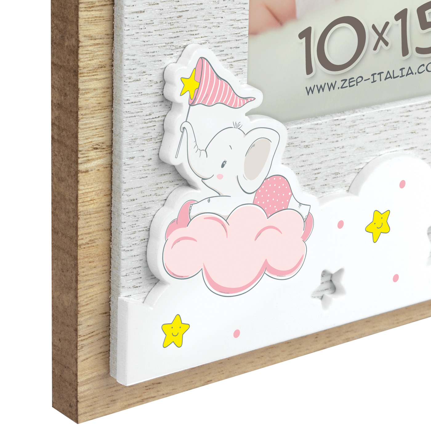 Muuta kotisi henkilökohtaiseksi taideteos seinällä tällä viehättävällä valokuvakehyksellä, joka tuo esille elämän pienet hetket. Mitat 10x15 cm tekevät siitä täydellisen muistoesineen kaikkein pienimmistä muistoista. Tätä taulukehystä koristaa hurmaava vauvateema, johon kuuluu söpö elefantti, vaaleanpunaiset kuviot ja pienet tähdet, jotka yhdessä luovat lämpimän ja rakastavan ilmapiirin.