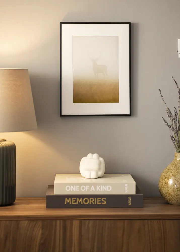 Kun haluat kehyksen suurille valokuville, joka ei ole liian näkyvä, on "Köpenhamn Musta" sopiva valinta. Sen ohut kiiltävä alumiinipinta tuo "Köpenhamn Musta" -kehykselle eleganssia ja kehys sopii lähes kaikkiin ympäristöihin.