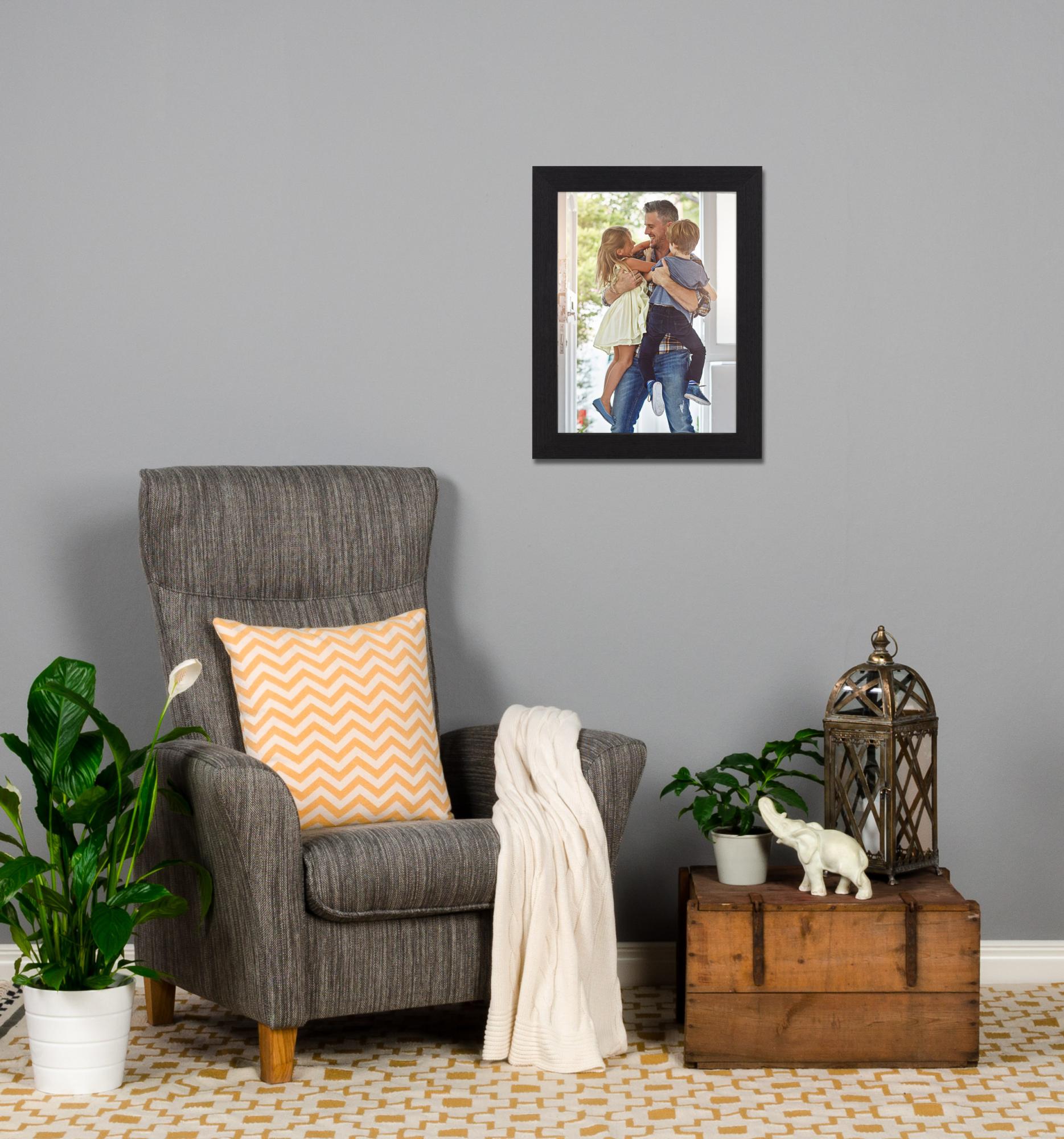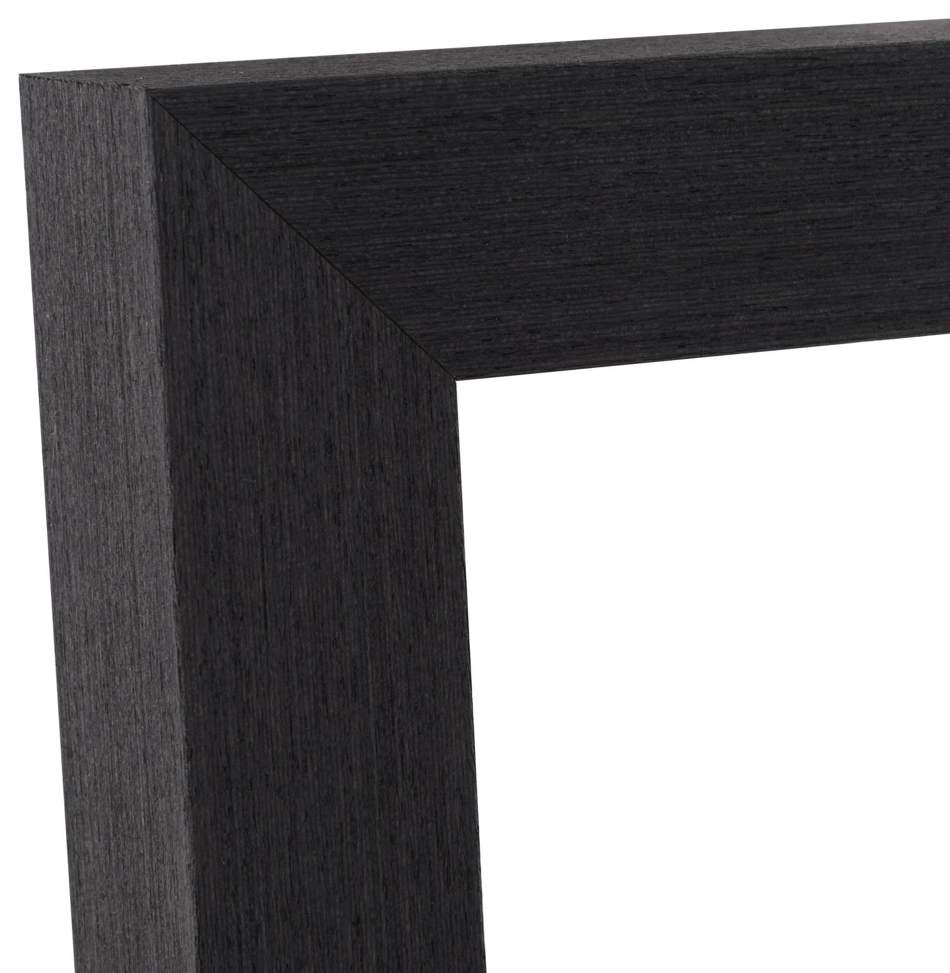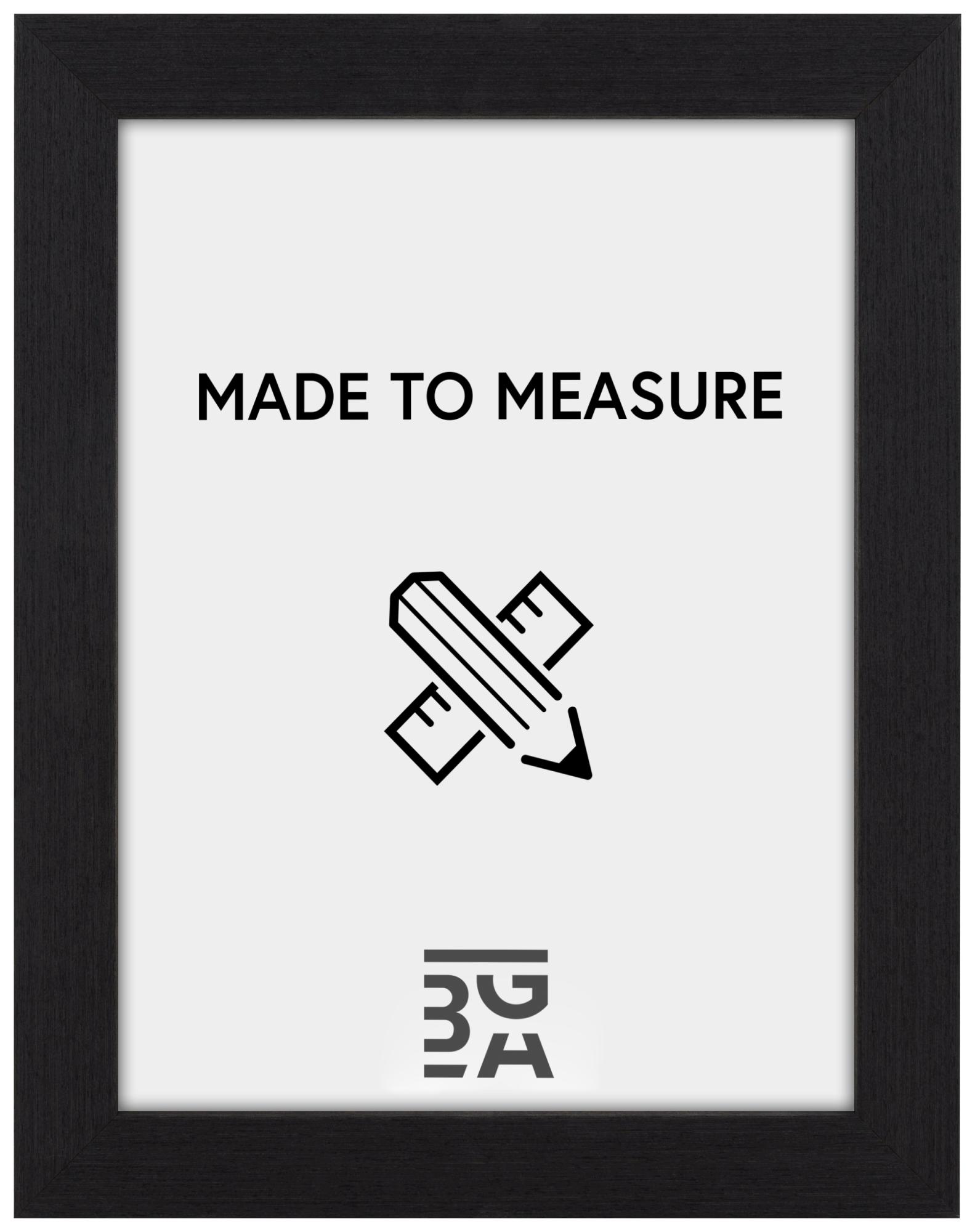 Tämä mittatilauskehys valmistetaan omassa kehystystyöpajassamme, mikä tarkoittaa, että voit saada sen juuri haluamassasi koossa. Kehyksen lista on 39 mm leveä ja syvyys 52 mm, mikä antaa vakaan ja tukevan tunteen. Valmistettu männystä, tämä kehys tarjoaa sekä kestävyyttä että luonnollista kauneutta, joka täydentää sen eleganttia mustaa pintakäsittelyä.