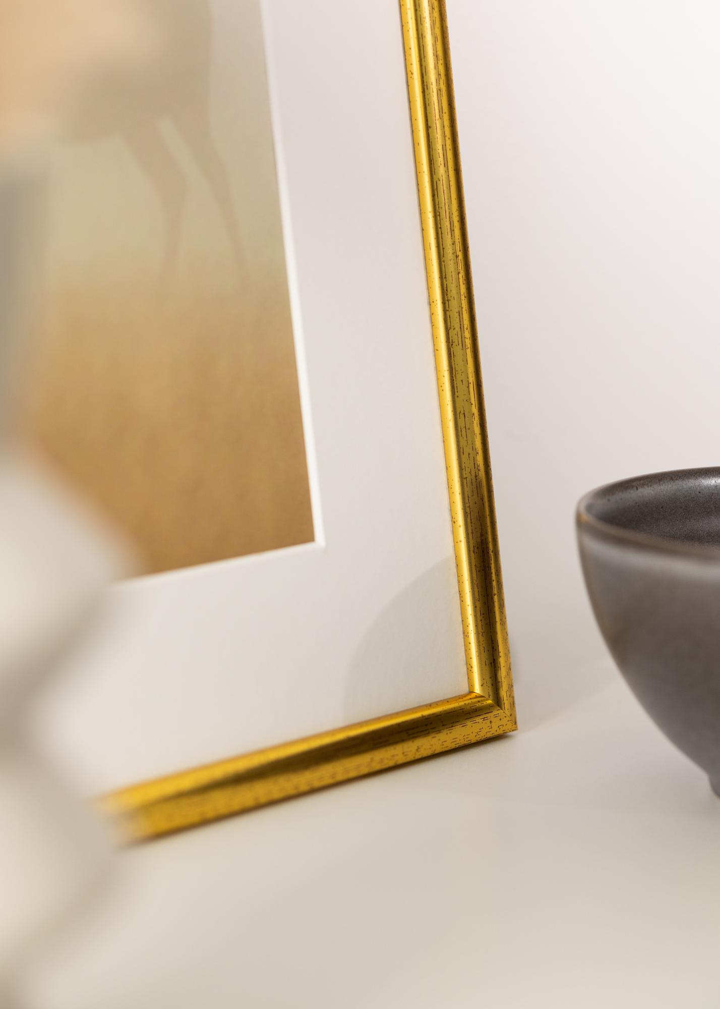 Käynnistä kehysvalitsin »Ohuiden (15 mm) Newline Kullanvärinen- kehysten kuvio vetää huomion kuvan kohteeseen. Valokuvakehykset näyttävät vanhanaikaisilta niiden punapilkullisen kultareunojen ansiosta.