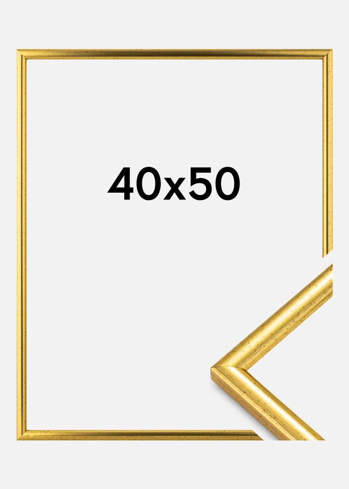 Ohuiden (15 mm) Newline Kullanvärinen- kehysten kuvio vetää huomion kuvan kohteeseen. Valokuvakehykset näyttävät vanhanaikaisilta niiden punapilkullisen kultareunojen ansiosta.