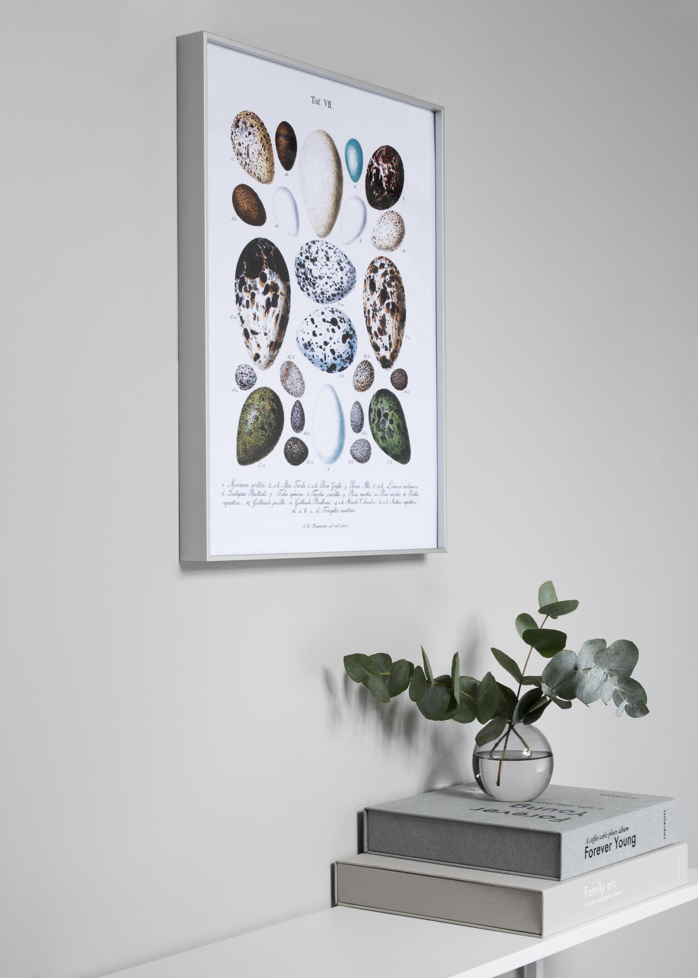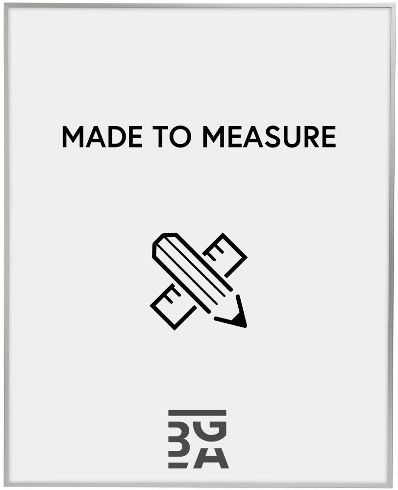 Tämä kehys on matan hopeanvärinen ja valmistettu alumiinista. Kehys on leveydeltään ainoastaan 5,5 mm, listan syvyyden ollessa 34,9 mm. Valitset itse haluamasi kehyskoon - täytät vain haluamasi mitat tilausvaiheessa.