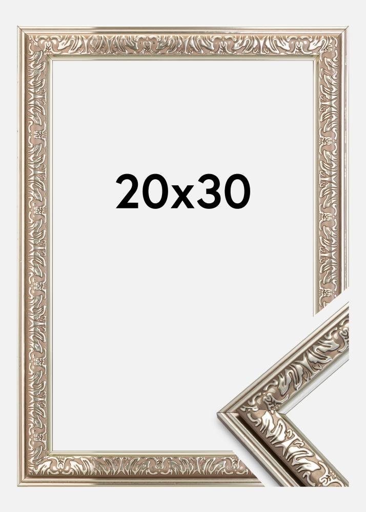 Tyylikkäät, retrotyyliset Nostalgia Hopeanvärinen- kehykset, joissa on hieno koristelu. Sopivat hyvin etsiessäsi leveitä retrokehyksiä hienoimmille kuvillesi.