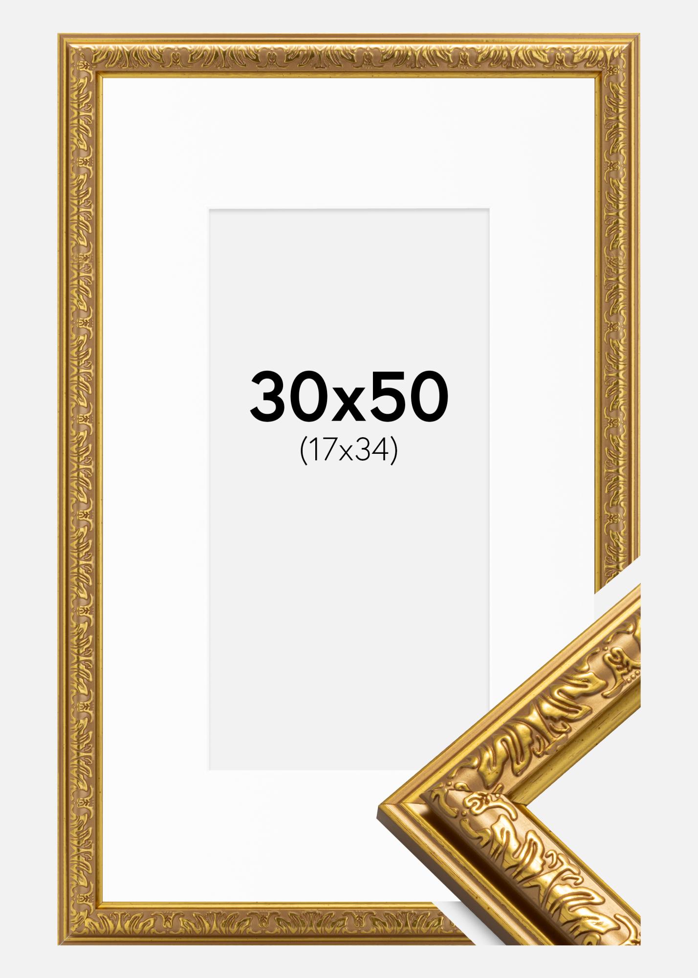 Kehys Nostalgia Kulta 30x50 cm - Passepartout Valkoinen 18x35 cm
