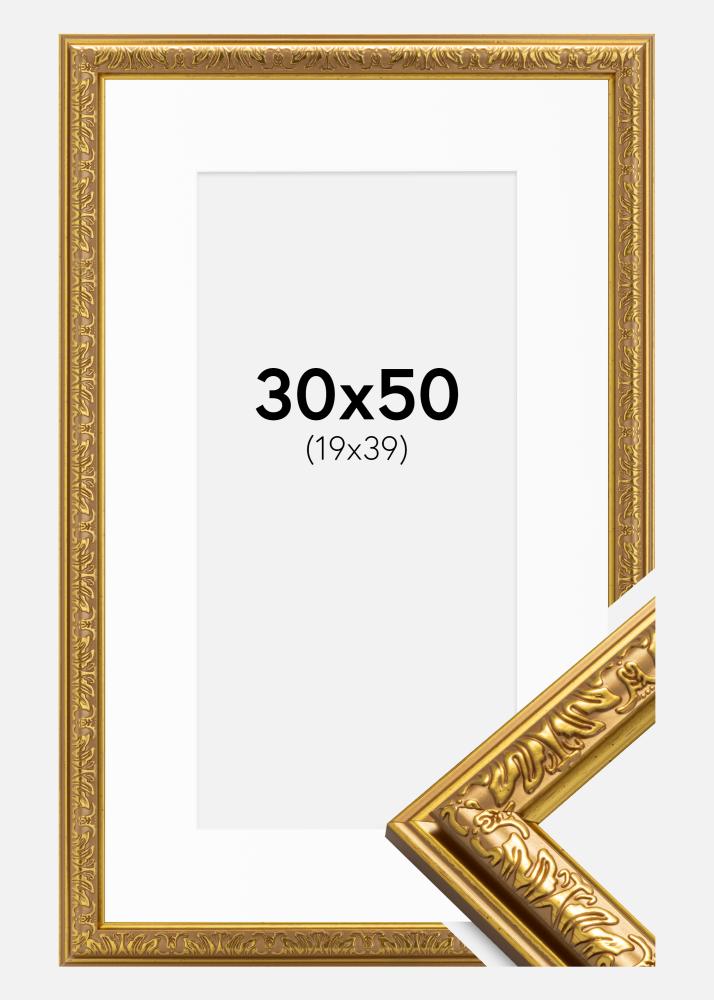 Kehys Nostalgia Kulta 30x50 cm - Passepartout Valkoinen 20x40 cm
