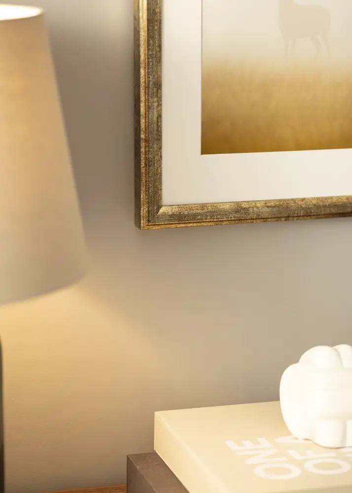 Ranka Nyhyttan Antiikki Kulta on elegantti ja monipuolinen valokuvakehys, joka valmistetaan omassa kehystyöverstaassamme. Sen siro kultaväri ja antiikkipatinainen pinta tarjoavat hienovaraisen rakenteen, joka antaa rustiikkisen tunteen. Kulunut viimeistely yhdistyy tyylikkäisiin reunoihin luoden ajattoman kehystyksen, täydellisen taideteoksille ja valokuville, joilla on klassinen tai vintage-luonne.